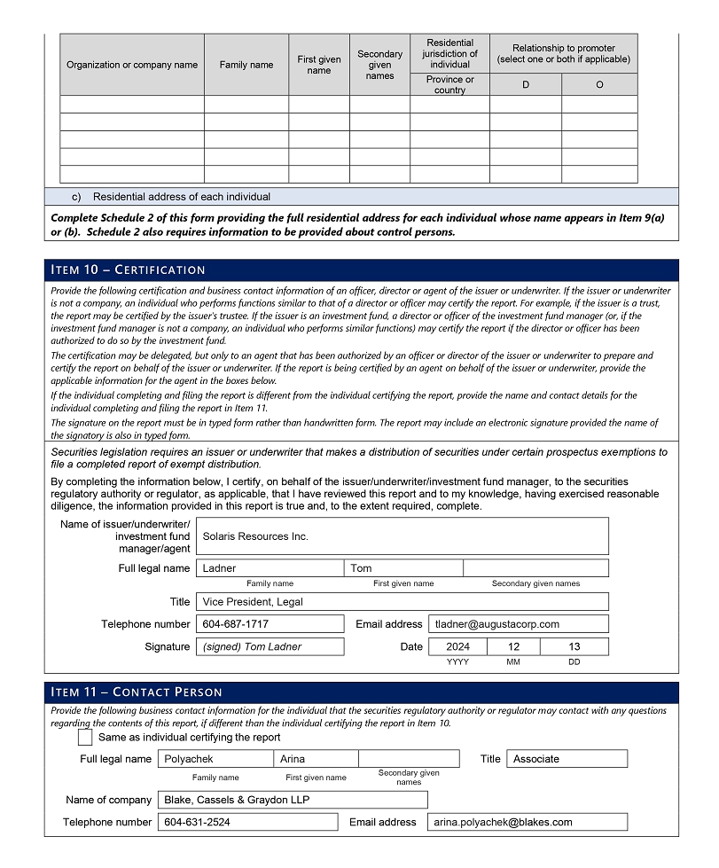 On November 20, 2024, Solaris announced final steps to complete its emigration by year-end, including management and board changes; a growth-oriented spin-out anticipated in 2025; and a C$500,000 private placement.