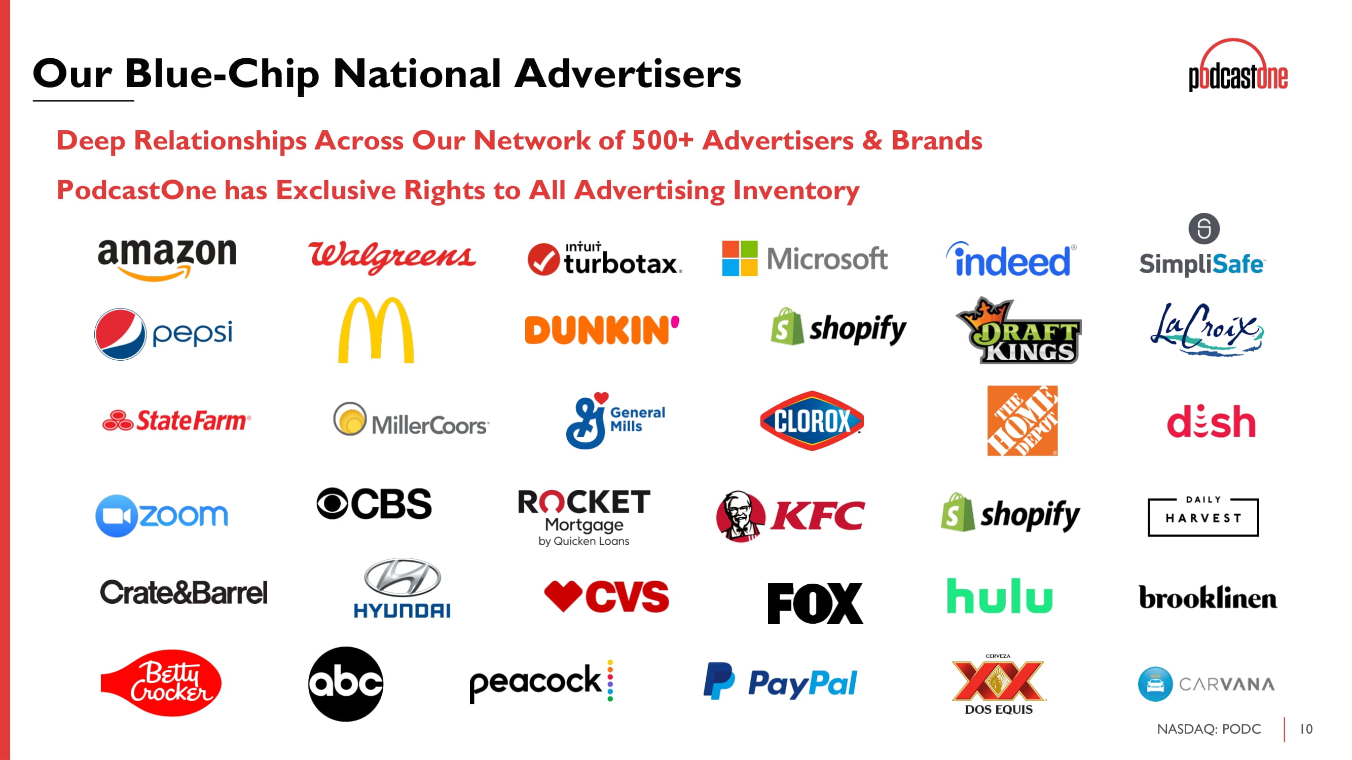 These are tested shows – these aren’t big risks these companies are taking,” – J o sh L i n d g r en , Hea d o f CAA’ s Po d c a s t Depa r t m en t “ Joe Rogan’s Renews Spotify Deal, Podcast Will No Longer Be Exclusive to the Platform $250M+ Alex Cooper Jumps From Spotify to SiriusXM $125M SiriusXM Inks ‘SmartLess’ Podcast Three - Year Deal $100M+ Kelce Brothers Sign Three - year Deal With Amazon’s Wondery for ‘New Heights’ Podcast $100M+ 2024 Podcast Pay - days Watchable podcasts are growing in popularity; 1 in 3 now say they prefer actively watching podcasts with videos.” – Cu mu l u s Med i a a n d S i g n a l Hi l l In s i g h t s ' Po d c a s t Do w n l o a d – F a l l 2024 R epo r t “ 8 NASDAQ: PODC Vision & Objectives Near - Term ▪ Be the go - to platform to grow audiences and expand reach for established and emerging content creators ▪ Invest in technology and infrastructure to produce best - in - class podcasts with high margins ▪ Grow the advertising platform with diversification of podcasts and by partnering with top brands to reach key demographics and loyal listeners, resulting in growth above industry trends Long - Term ▪ Partner, nurture and develop industry leading podcasts by offering diverse revenue growth and a return profiles that exceeds industry growth metrics and returns ▪ Execute on focused M&A strategy to grow PodcastOne through the acquisition of existing platforms, technology, and production capabilities to capitalize on future industry trends ▪ Be an acquirer of choice for smaller podcast platforms (10 - 50 podcasts), offering efficiencies in cost structure, ability to scale and access to much larger advertising platform 9 NASDAQ: PODC PodcastOne Pro ▪ Specializes in transforming podcasts into polished productions ▪ Offers fully customizable production packages for brands, professionals, or hobbyists ▪ Leverages current infrastructure, to drives higher margins & diversifies revenue streams Platform of Choice Public Relations Hosting & Distribution Editing Building a Successful Podcast Requires More Than Just Great Content; It Requires a Strategic Approach Unmatched Infrastructure ▪ Allows creators to focus on what they do best and PodcastOne to offer value - added services that efficiently drive revenues