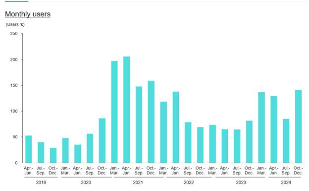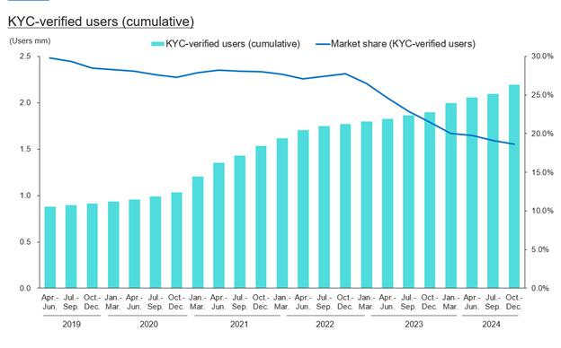Cash and cash equivalents mainly consist of bank deposits. As of December 31, 2024, we had cash and cash equivalents of ¥12,673 million. As of December 31, 2024, we also had cash segregated as deposits of ¥60,648 million. In accordance with Japanese laws and regulations, from the year ended March 31, 2021, at least 100% of the legal tender deposited by customers shall be protected by trust companies. Therefore, cash deposited by customers is accounted for under different accounts depending on whether it is protected by trust companies or not. Additionally, Coincheck entered into a line of credit with Monex Finance Corporation, with aggregate commitments as of March 31, 2024, and December 31, 2024 of ¥6,000 million and ¥6,000 million, respectively. No amounts were outstanding under this arrangement as of March 31, 2024 or December 31, 2024, after drawing down and subsequently repaying ¥6,000 million in June of 2024. Coincheck Parent entered into its own commitment line contract of 2,540 million yen as a debtor with Monex Finance Corporation as of December 31, 2024, for the purpose of stable operating capital. As of December 31, 2024, the balance outstanding under this was ¥2,526 million.
