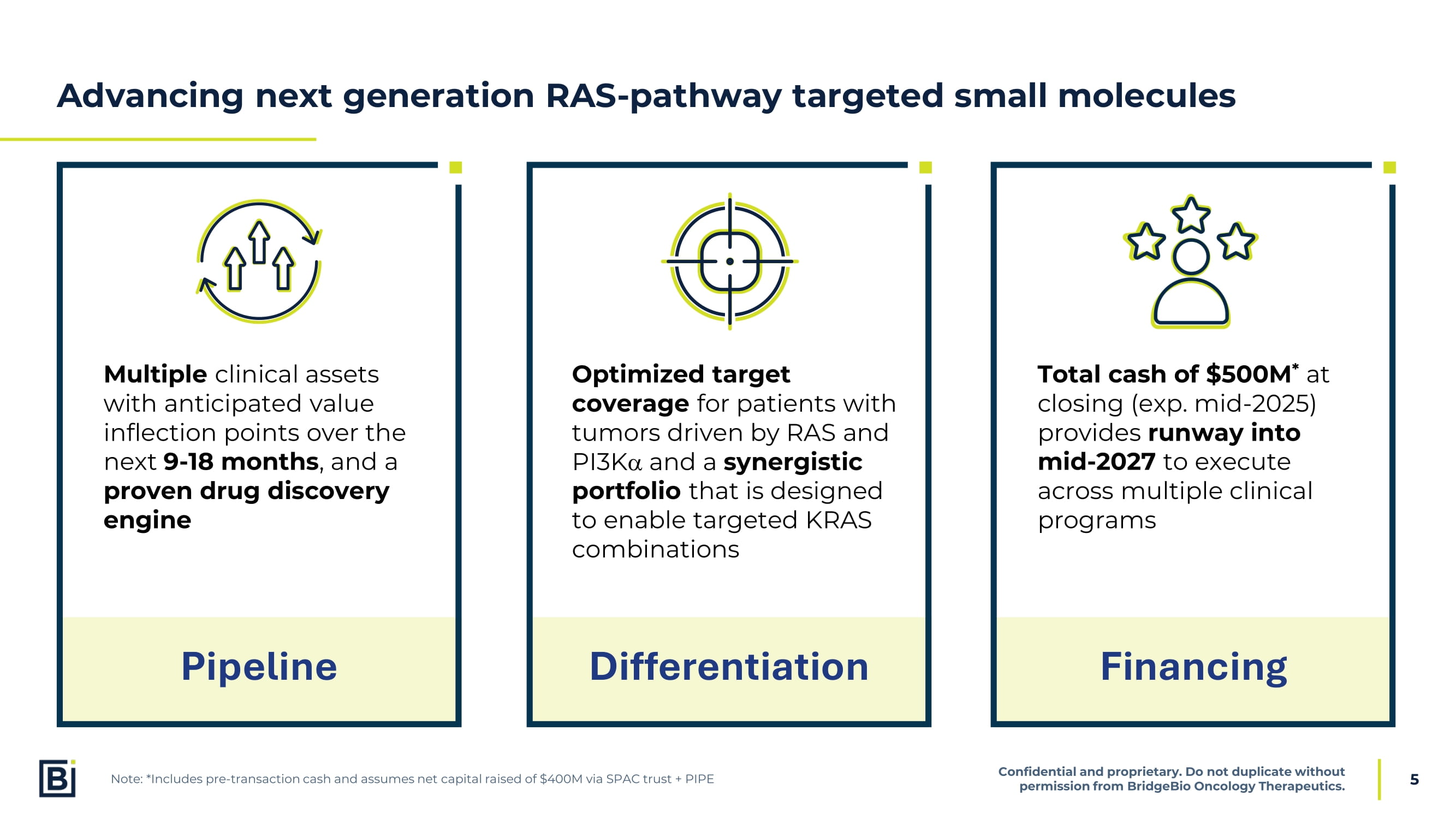 | ● | The combined entity will be named BridgeBio Oncology Therapeutics (BBOT) and will be advancing a next-generation pipeline of therapies for patients with RAS and PI3Kα malignancies |