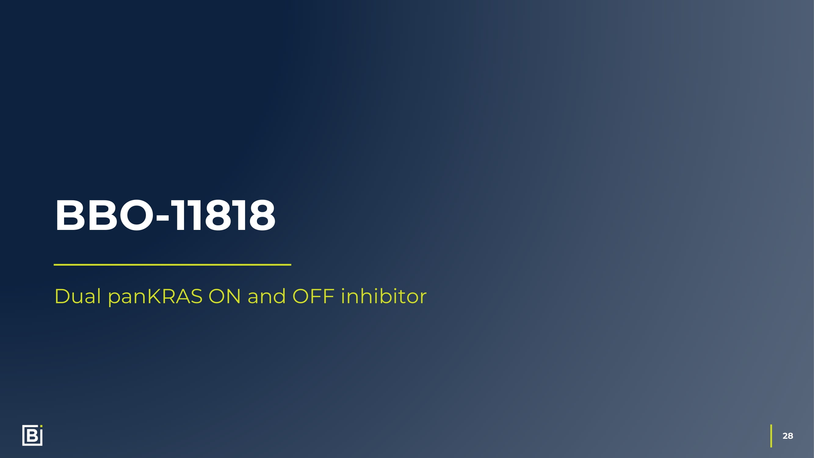 Net proceeds from the transaction are expected to provide BBOT with the capital needed to accelerate the development of three lead programs: BBO-8520, BBO-10203, and BBO-11818. BBO-8520 is a direct inhibitor of KRASG12C in both the “ON” and “OFF” states and is currently being evaluated in the Phase 1 ONKORAS-101 trial (NCT06343402) for patients with KRASG12C mutant non-small cell lung cancer. BBO-10203 is an orally bioavailable small molecule with a novel mechanism of action that is designed to inhibit the physical interaction between RAS and PI3Kα, resulting in the inhibition of RAS-driven PI3Kα-AKT signaling in tumors. BBO-10203 is being evaluated in the Phase 1 BREAKER-101 trial (NCT06625775) for patients with locally advanced and unresectable or metastatic HER2+ breast cancer, HR+/HER2- breast cancer, KRAS mutant colorectal cancer and KRAS mutant non-small cell lung cancer. BBO-11818 is a pan-KRAS inhibitor targeting mutant KRAS in both the “ON” and “OFF” states with strong potency against KRASG12D and KRASG12V mutants. BBOT expects to dose the first patient with BBO-11818 in the first half of 2025.