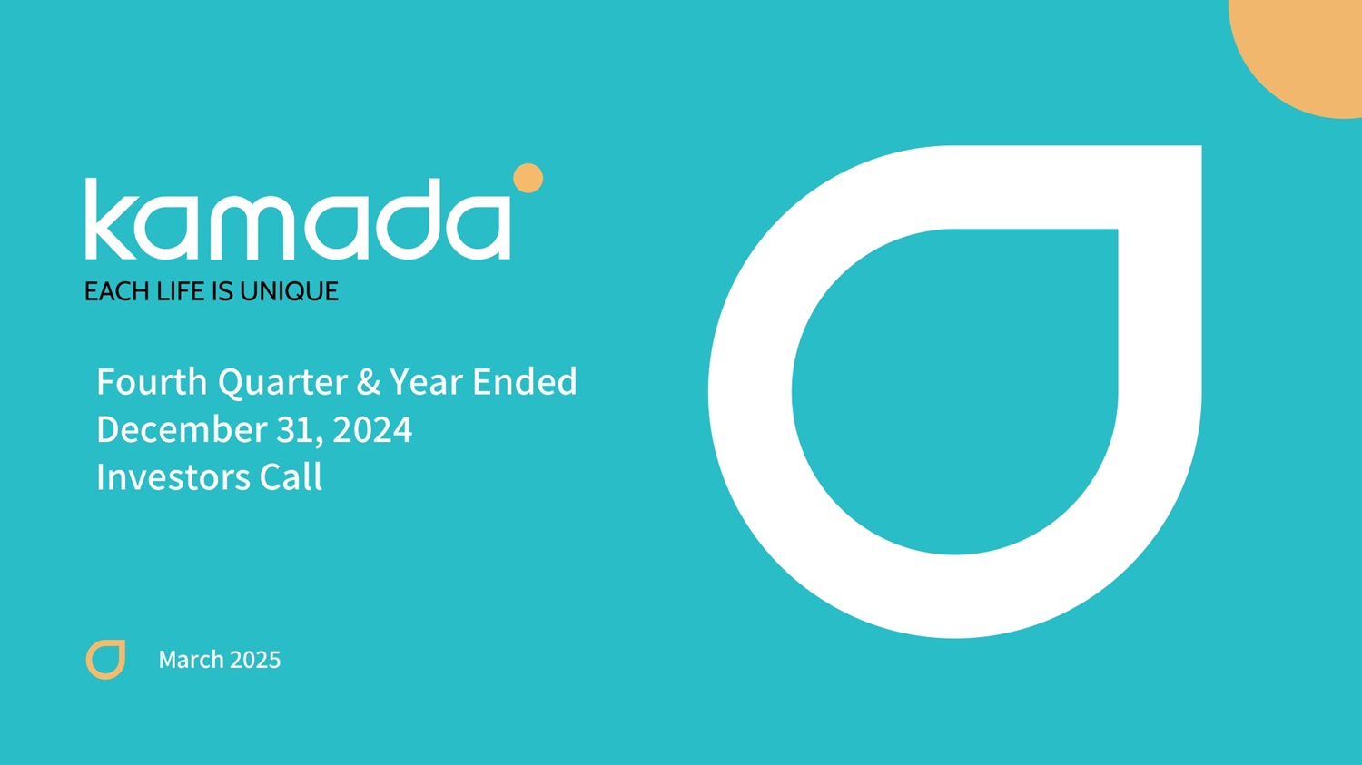 REHOVOT, Israel, and HOBOKEN, NJ – March 5, 2025 -- Kamada Ltd. (NASDAQ: KMDA; TASE: KMDA.TA), a global biopharmaceutical company with a portfolio of marketed products indicated for rare and serious conditions and a leader in the specialty plasma-derived field, today announced financial results for the three months and year ended December 31, 2024.