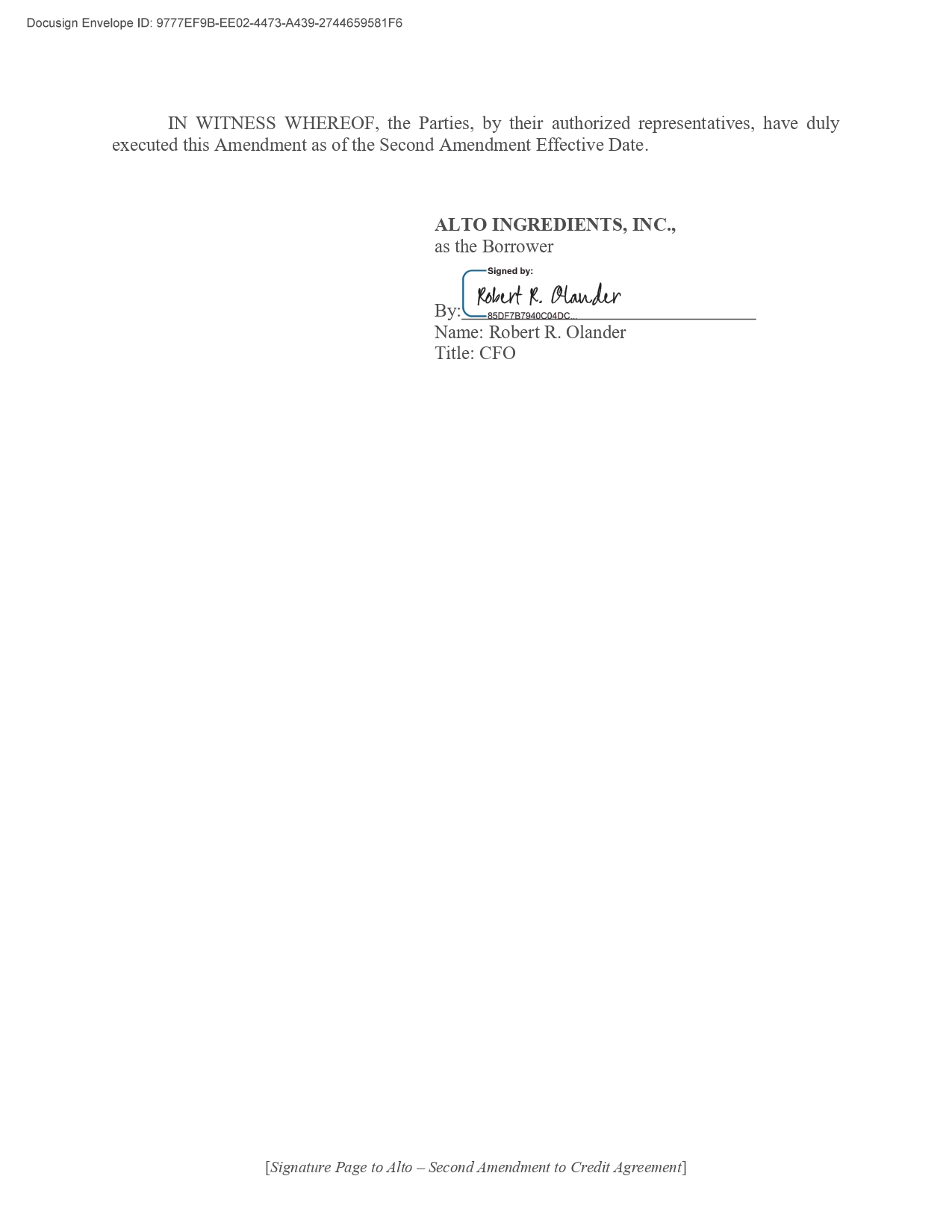 | In addition, Congress has permitted the SEC to pay a bounty to any informant whose testimony leads to the imposition of a civil penalty. The bounty is not to exceed 10% of the imposed penalty and is to be taken from the penalty when paid. Informants should first inform the Chief Legal Officer or the Chairman of the Audit Committee prior to approaching the SEC so that Alto Ingredients can take immediate action to prevent further violations. |