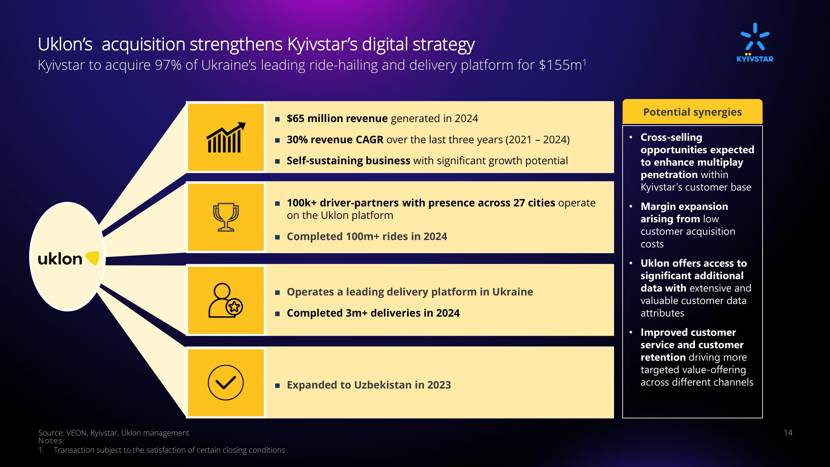 Transaction subject to the satisfaction of certain closing conditions 4. In 2024 Areas of future strategic interests and identified potential market opportunity Source: VEON, Kyivstar, Uklon management Notes: 1. MAU – Monthly active users 2.