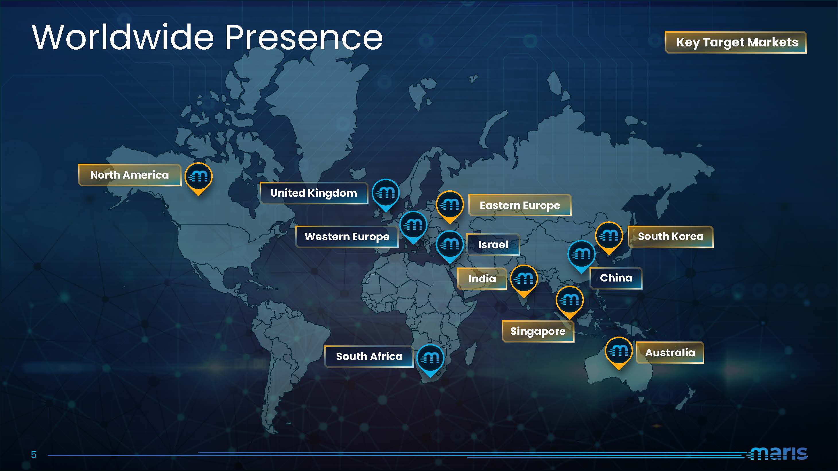 NASDAQ Capital Market : MTEK , MTEKW Employees: 16 3 Smart City Aerospace Video & AI Edge Computing Technology Strong revenue growth, strategic partnerships, major orders and successful product launches Rapidly growing demand for AI - powered video solutions in defense, homeland security, and unmanned systems Delivers full situational awareness solutions; leveraging strategic defense partnerships with a focus on the U.S. and India Modular, future - proof solutions for dynamic operational needs 2024 Highlights 4 2024 Financial Highlights 54% YoY Reduction in operating loss (vs. 2023) 50%+ YoY Revenue Growth (vs. 2023) Defense & HLS Leadership in 2024 Expanding Market Opportunity Core Business Strategy 5 Worldwide Presence North America United Kingdom Eastern Europe Western Europe Israel India South Africa South Korea China Australia Singapore Key Target Markets