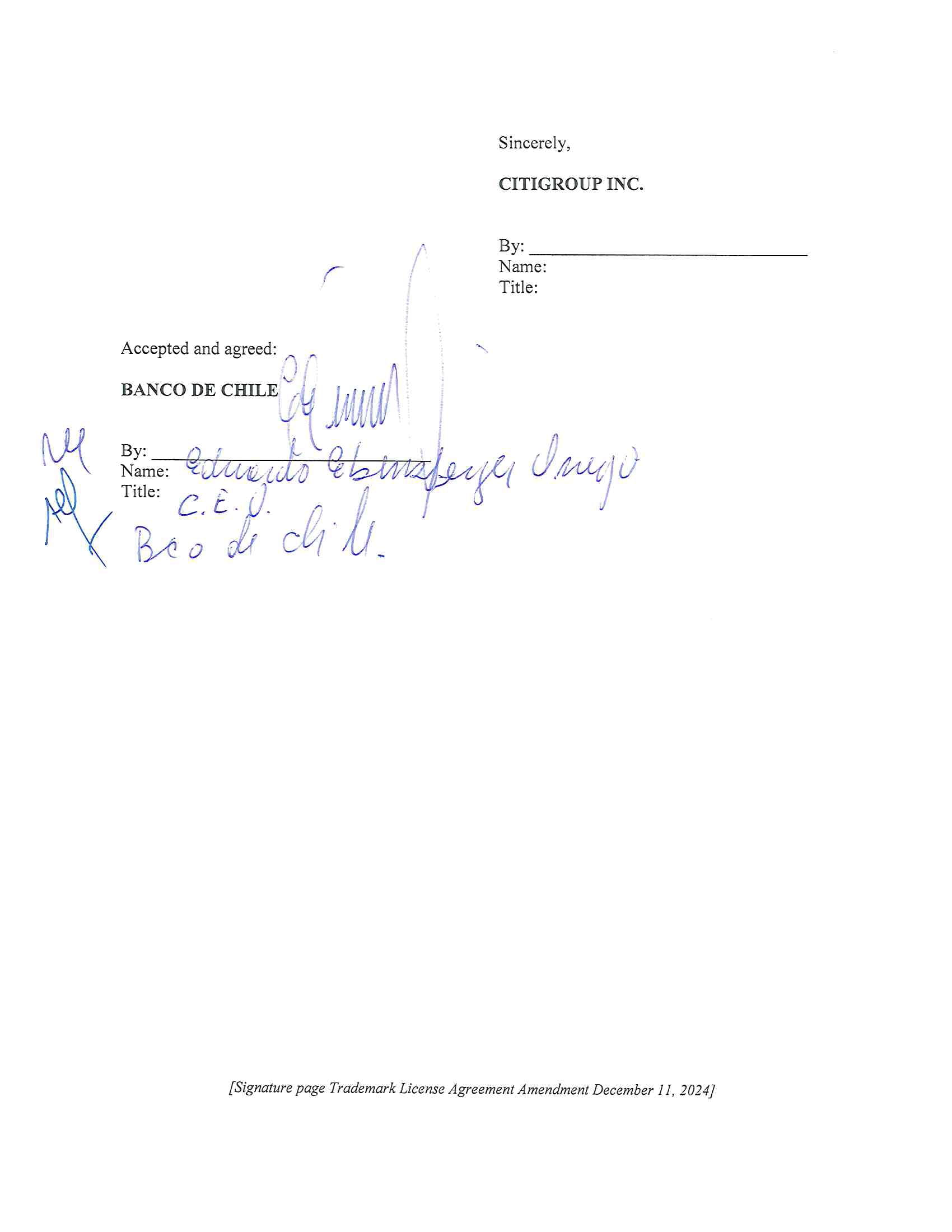 A signed original of this written statement required by Section 906 has been provided to Banco de Chile and will be retained by Banco de Chile and furnished to the Securities and Exchange Commission or its staff upon request.