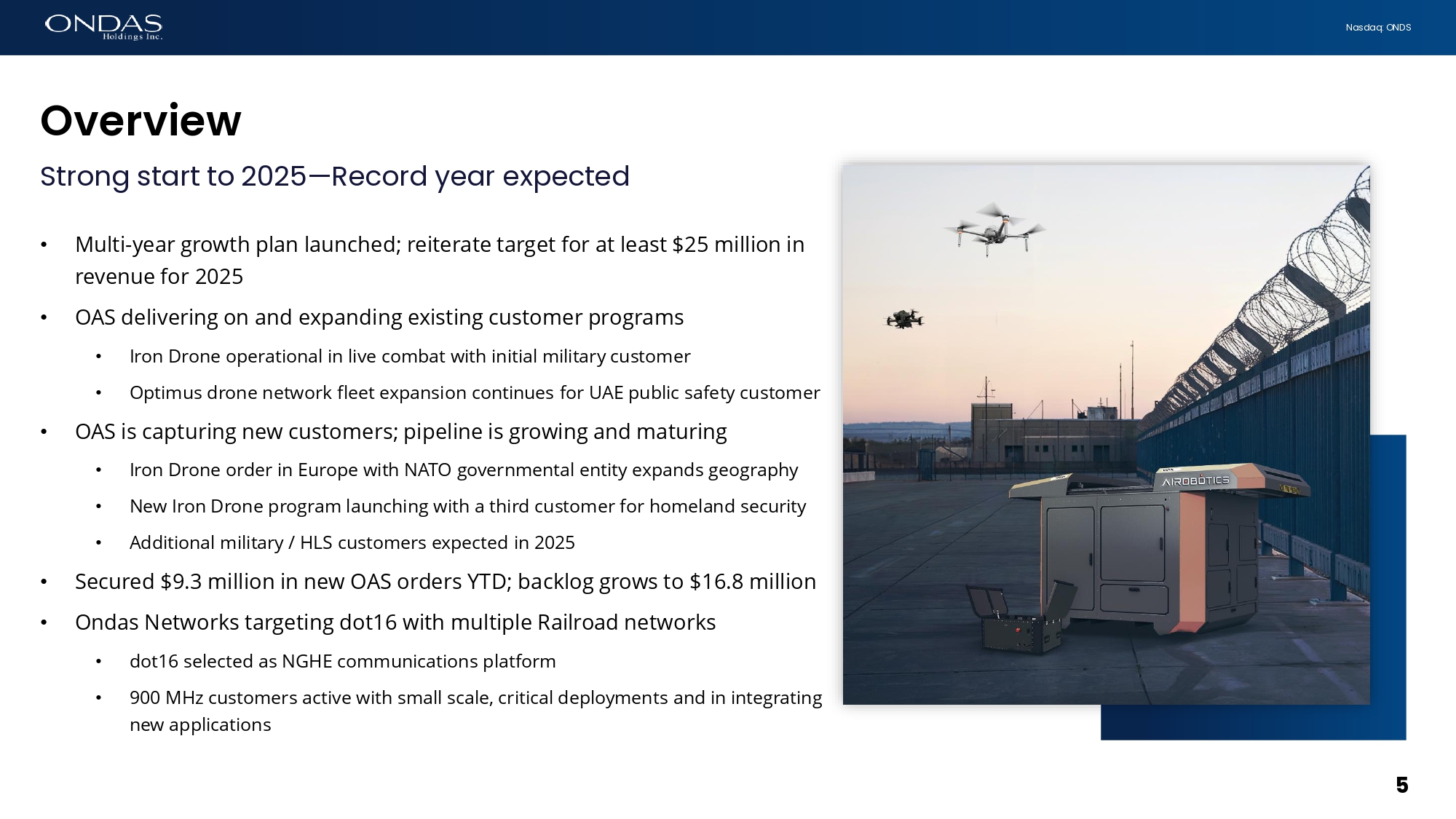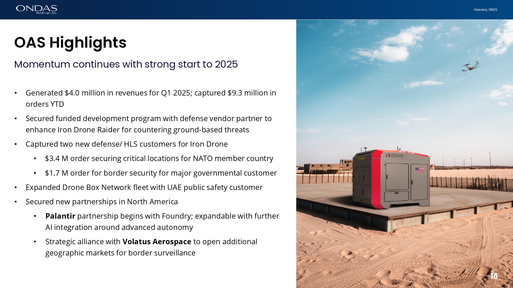 2025年第1四半期と最近のハイライト - Ondas Autonomous Systems (OAS))