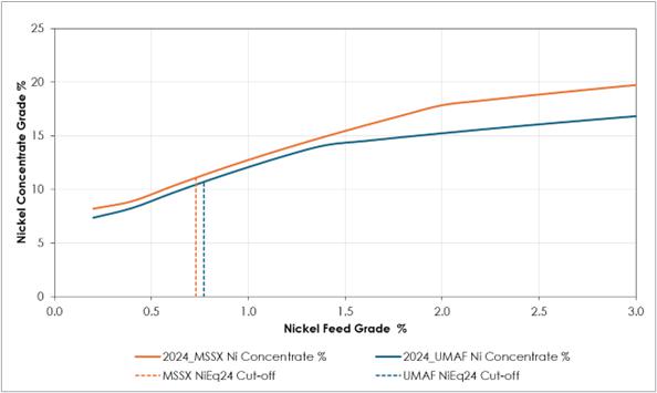 | 7. | All Mineral Resources in the 2024 Mineral Resource Update were assessed for reasonable prospects for economic extraction by reporting only material above cut-off grades of: MSSX NiEq24>0.73% and UMAF NiEq24>0.77%. |