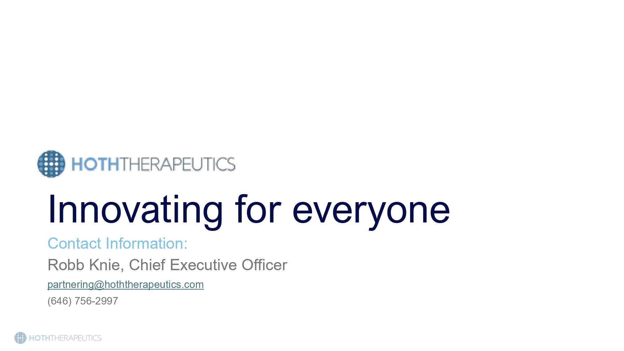 Innovating for everyone Contact Information: Robb Knie, Chief Executive Officer partnering@hoththerapeutics.com (646) 756 - 2997