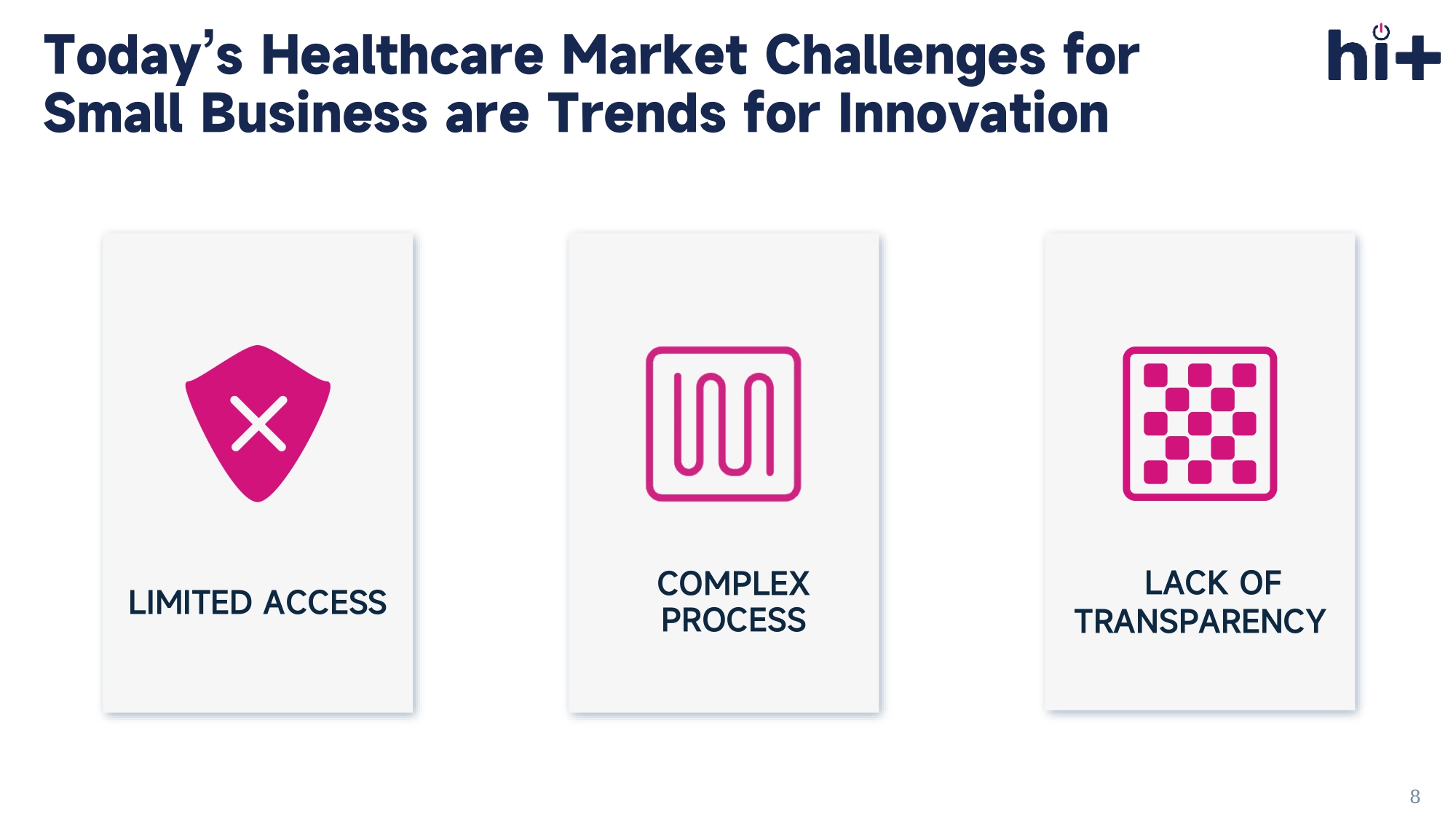 LIMITED ACCESS LACK OF TRANSPARENCY COMPLEX PROCESS Today’s Healthcare Market Challenges for Small Business are Trends for Innovation 8 Self - Funded Health Plans + Stop - Loss Coverage Affordable options tailored to the unique needs of small and mid - sized employers.