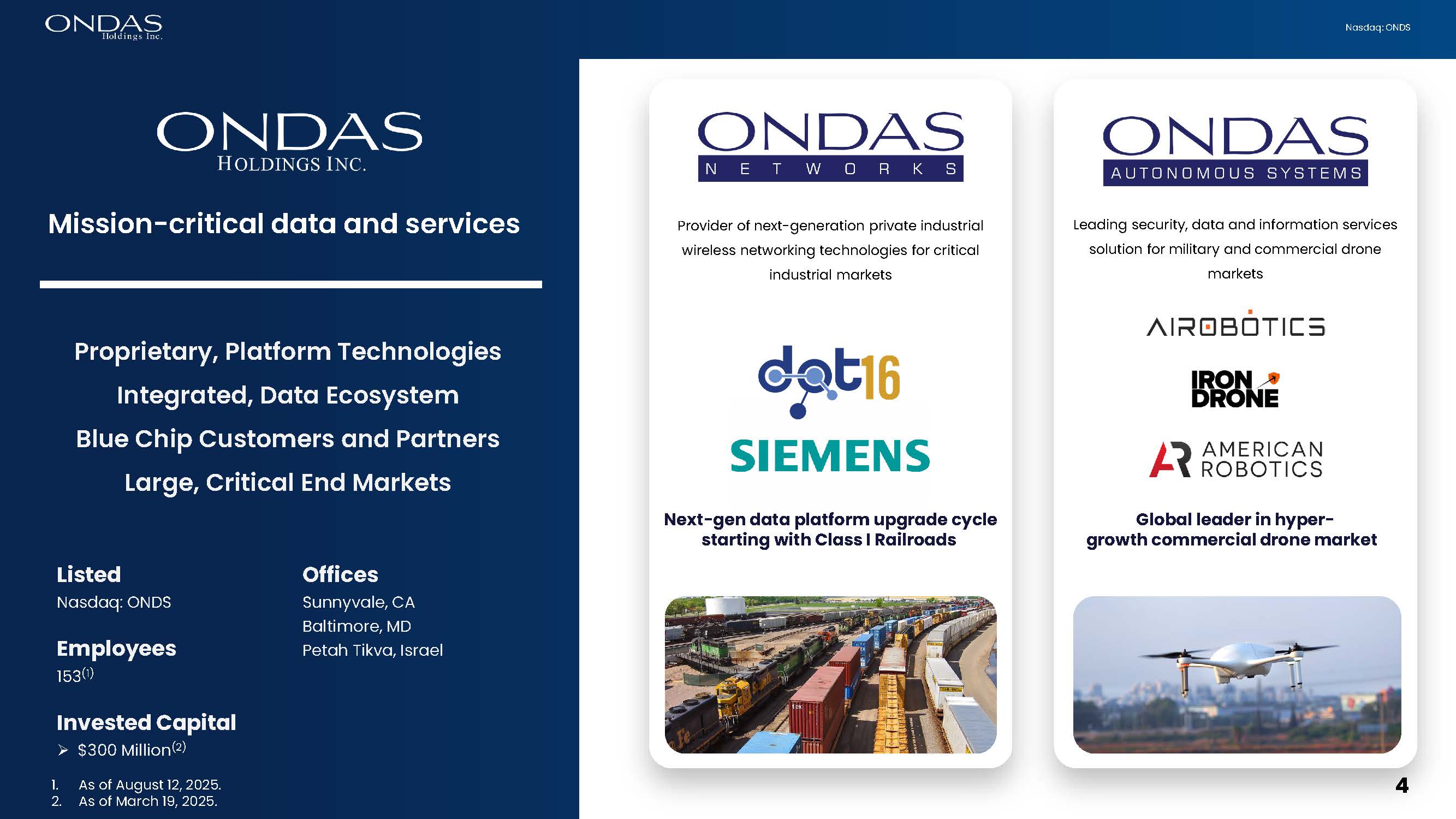 Nasdaq: ONDS 1 Autonomous Drones, Data and AI NASDAQ: ONDS | August 2025