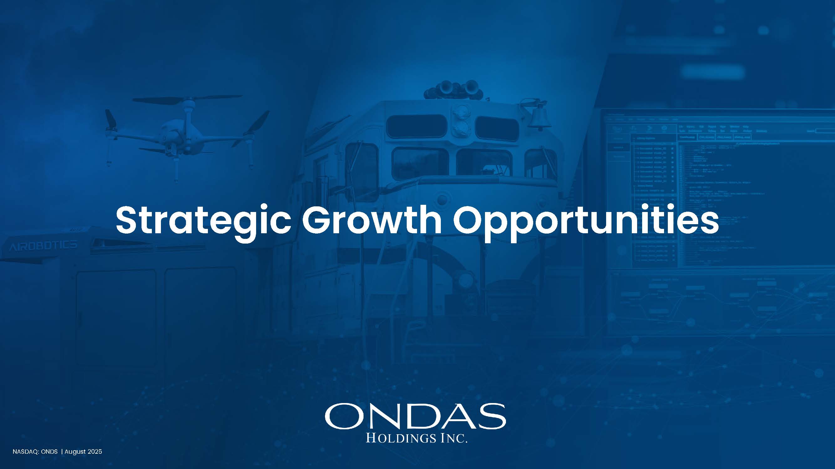 Company Data. Fully Integrated SOP Emergencies, Recurring Patrol 12 Operational Docking Stations +10,000 Flights in Populated Areas 67 Seconds Response Time - 3:53 min Reduced Response Time Nasdaq: ONDS 20 Strategic Growth Opportunities NASDAQ: ONDS | August 2025