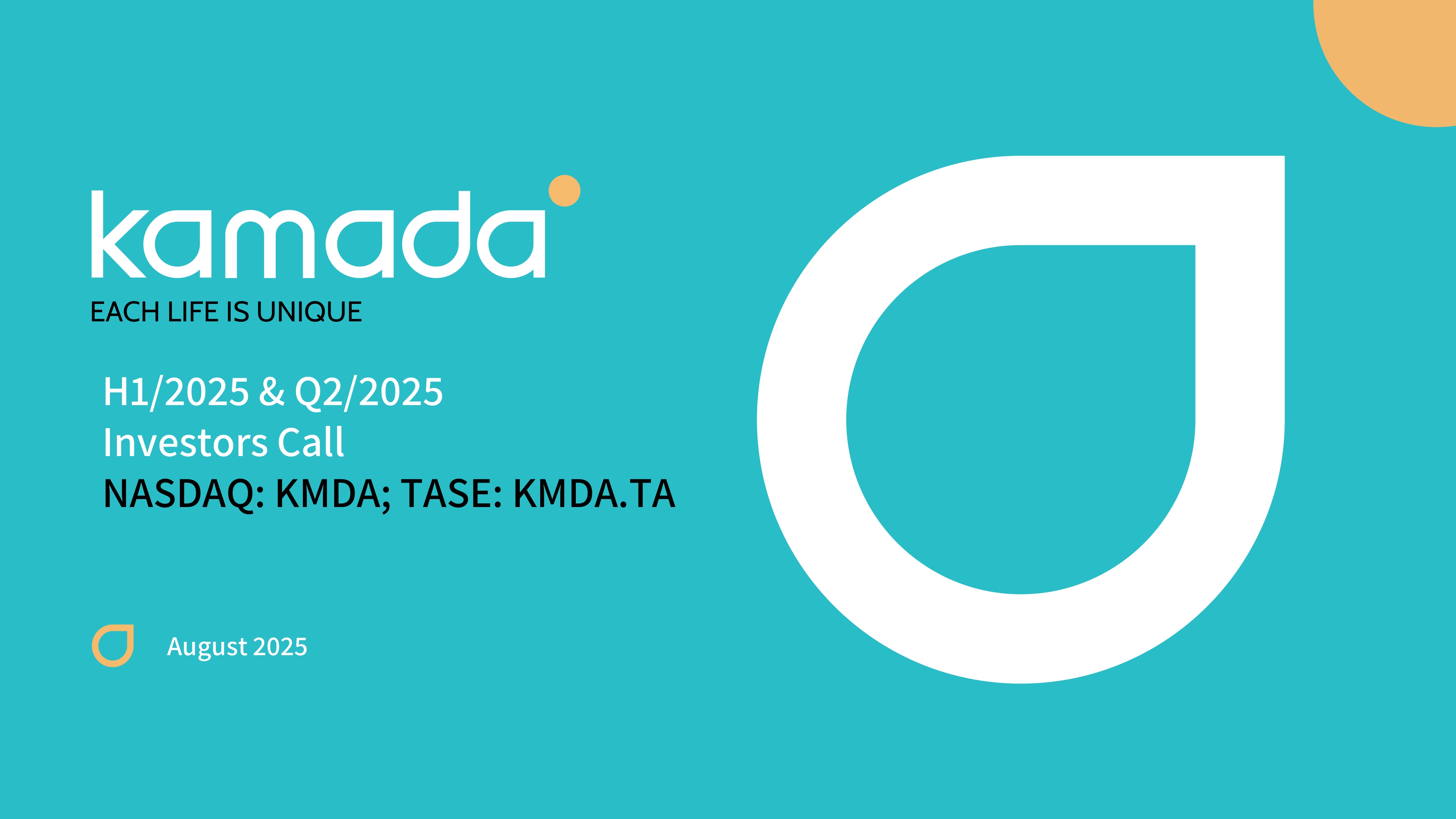 REHOVOT, Israel, and HOBOKEN, NJ – August 13, 2025 -- Kamada Ltd. (NASDAQ: KMDA; TASE: KMDA.TA), a global biopharmaceutical company with a portfolio of marketed products indicated for rare and serious conditions and a leader in the specialty plasma-derived field, today announced financial results for the three months and six months ended June 30, 2025.