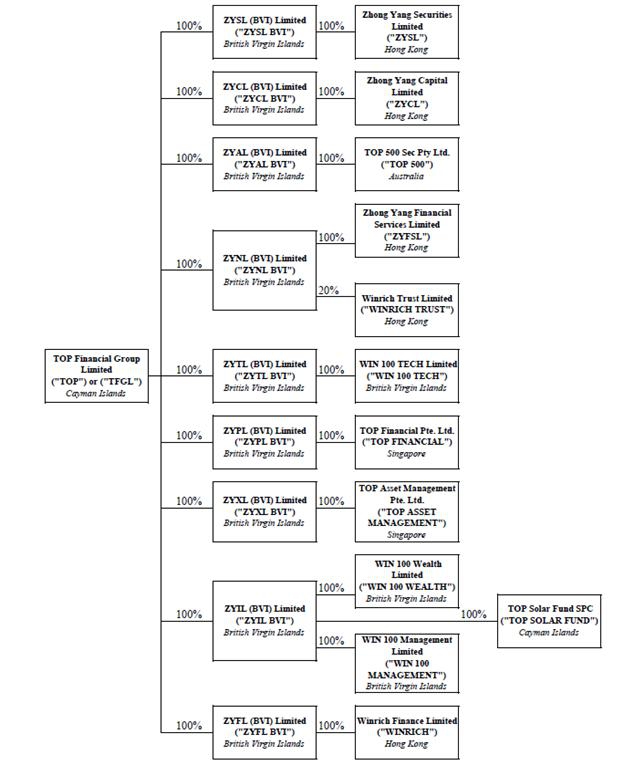 | ● | “TFGL”, “TOP”, the “Company”, “we,” “us,” “or “our” refers to TOP Financial Group Limited, a Cayman Islands exempted company. |