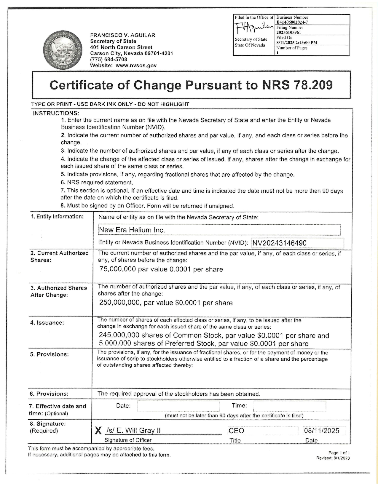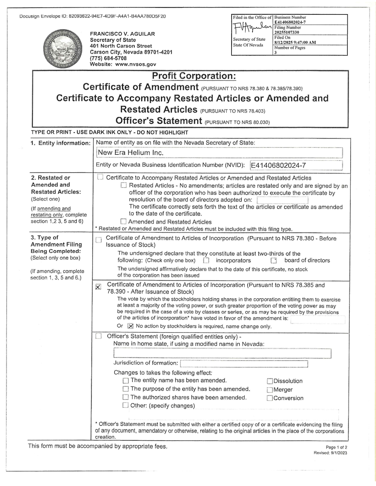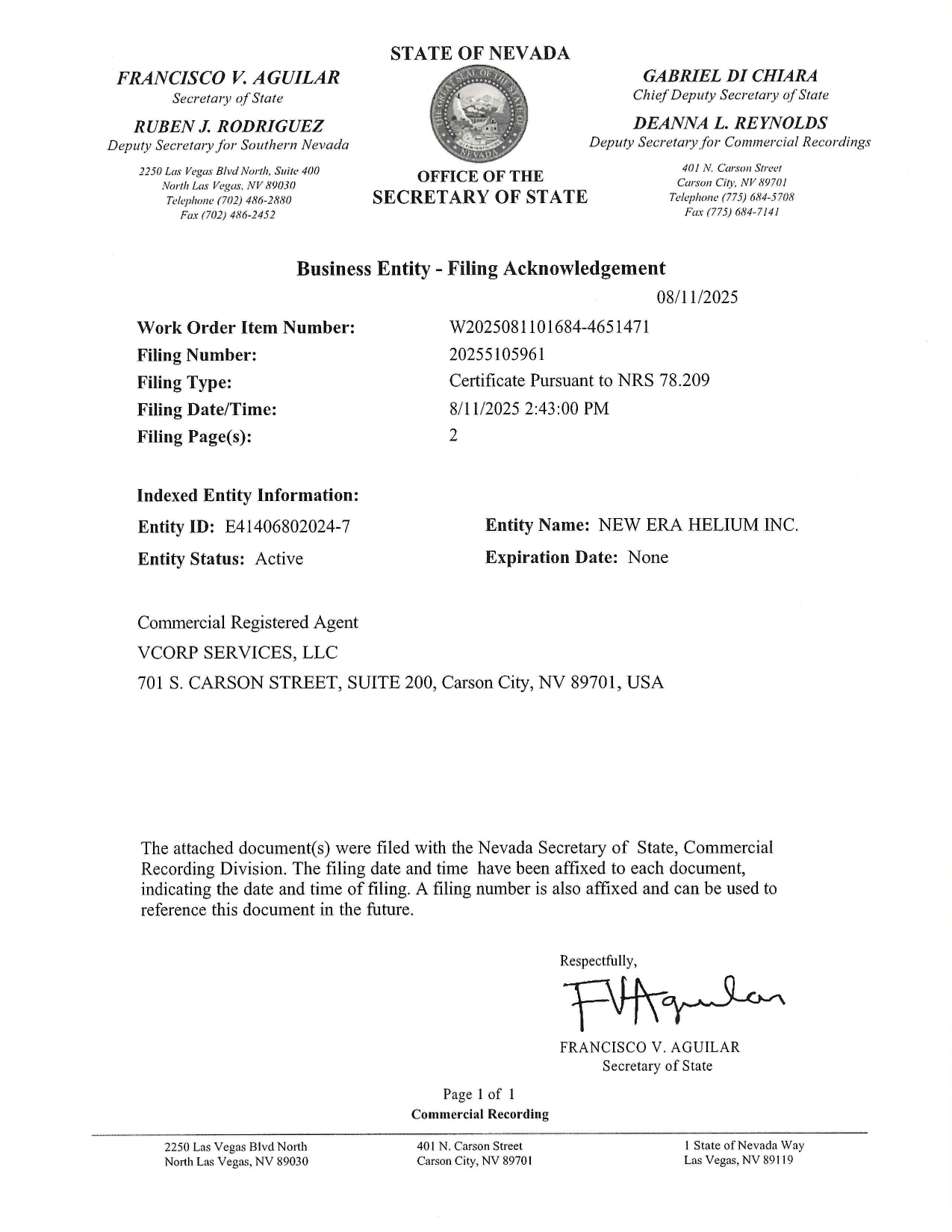 | Agreed and approved By: NEW ERA HELIUM INC.: | |