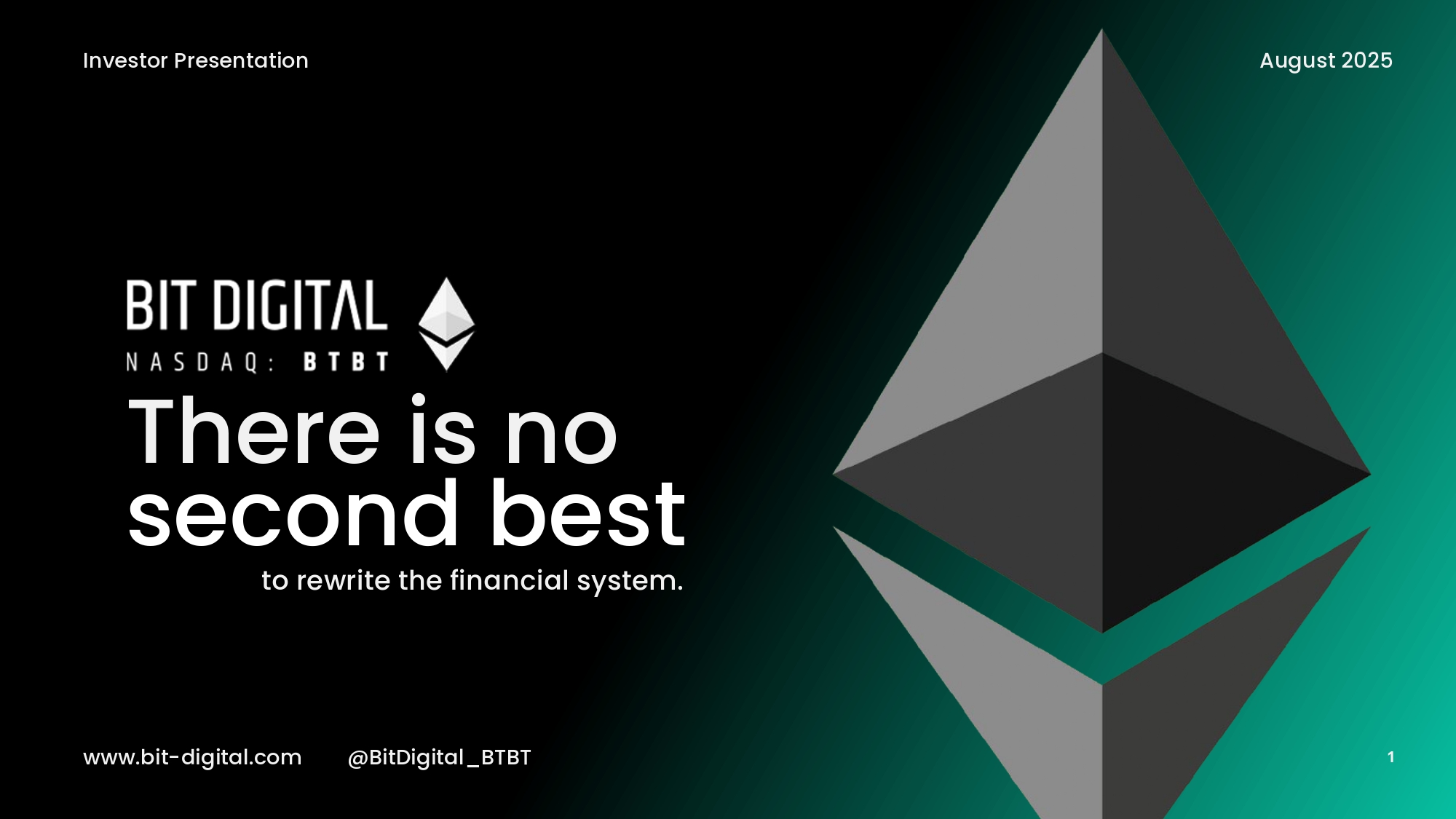 1 There is no second best to rewrite the financial system. www.bit - digital.com Investor Presentation @BitDigital_BTBT August 2025 Investing in our securities involves a high degree of risk.