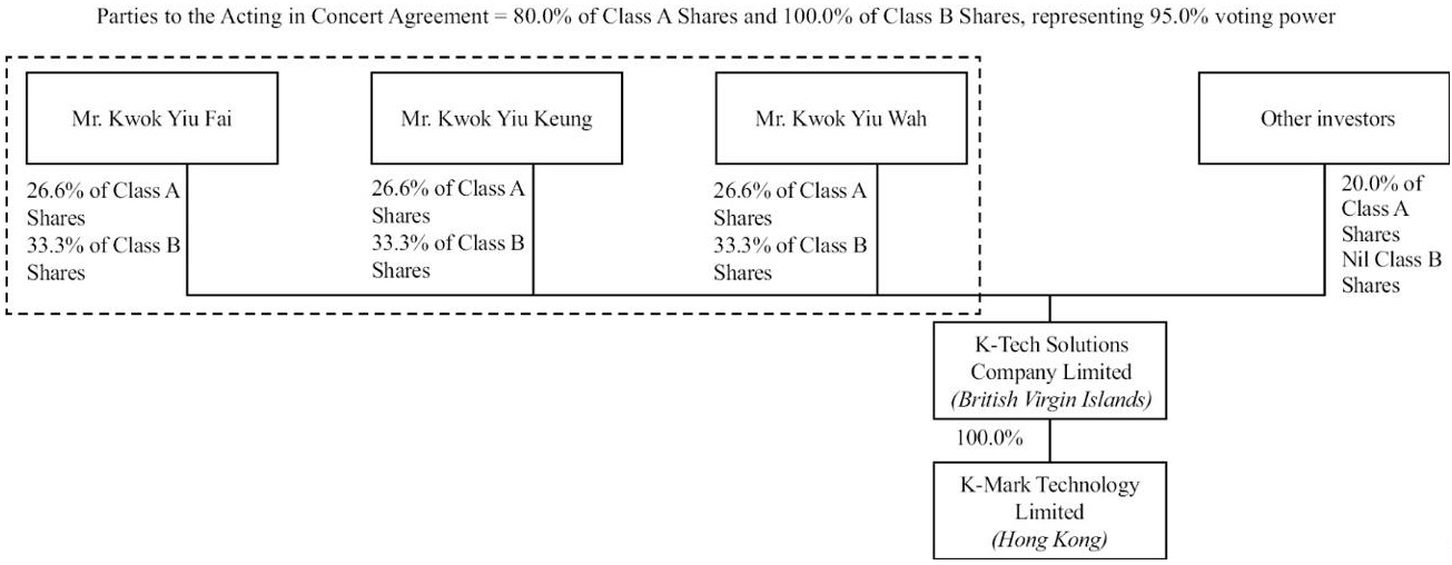 On December 2, 2024, K-Tech Solutions Company Limited was incorporated under the laws of the BVI, and was authorized to issue a maximum of 500,000,000 ordinary shares of a single class with par value of US$0.0001 per share. A total of 30,000 ordinary shares were issued and allotted to Mr. Kwok Yiu Fai, Mr. Kwok Yiu Keung and Mr. Kwok Yiu Wah. On December 20, 2024, as part of the reorganization in contemplation of the initial public offering of the Company (the “IPO” or the “Offering”), we completed a share swap transaction, pursuant to which KTech acquired all the issued shares of KMT from Mr. Kwok Yiu Fai, Mr. Kwok Yiu Keung and Mr. Kwok Yiu Wah by way of allotting and issuing an aggregate of 19,470,000 ordinary shares to them. As a result, the Company total issued 19,500,000 ordinary shares to them.