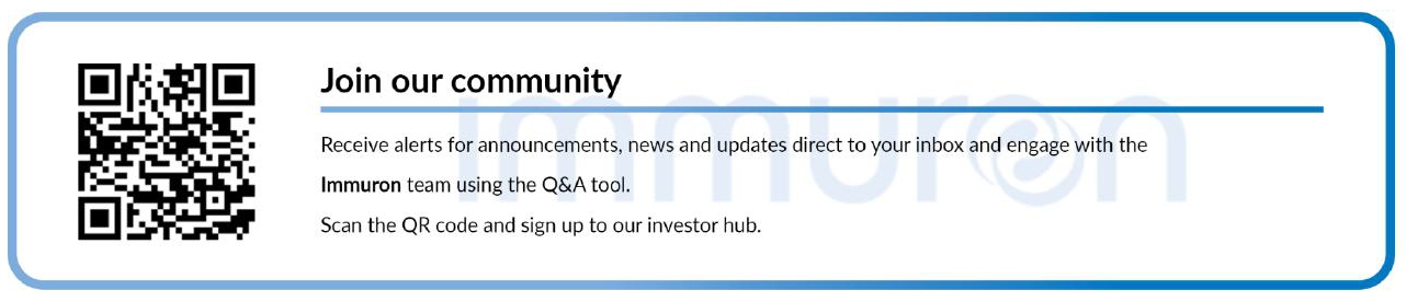 | 99.2 | Immuron partners with InvestorHub |