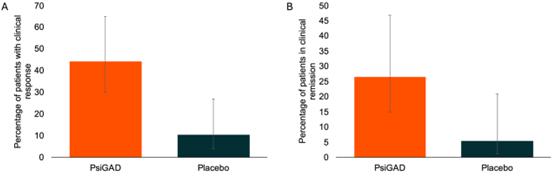 ● Clinical Response and Remission: Psi-GAD treatment resulted in a clinically meaningful response, corresponding to a reduction in HAM-A score from baseline of ≥50% in 44.1% of patients. A response rate more than four times higher than that of the placebo group. Of patients receiving PsiGAD treatment, 27% achieved full disease remission (HAM-A ≤7), five times higher than placebo.
