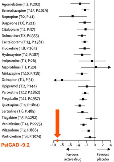 Figure 3. PsiGAD reduced anxiety scores to a greater extent than that reported for approved anxiety medications.