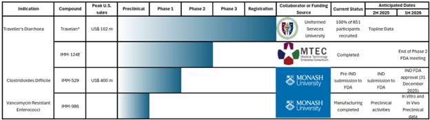 We currently market our flagship commercial product Travelan®, and Protectyn® in Australia, where both products are listed medicines on the Australian Register for Therapeutic Goods. Travelan® (AUST L 106709) is an over-the-counter product indicated to reduce the risk of travelers’ diarrhea, reduce the risk of minor gastro-intestinal disorders and is antimicrobial and is sold in pharmacies throughout Australia. Protectyn® (AUST L 231001) is currently sold online and in health practitioner clinics and is marketed as an immune supplement to help maintain a healthy digestive function and liver. We also market Travelan® (NPN 80046016) in Canada where it is licensed as a natural health product indicated to reduce the risk of travelers’ diarrhea, and presently market Travelan® in the U.S. as a dietary supplement for digestive tract protection.