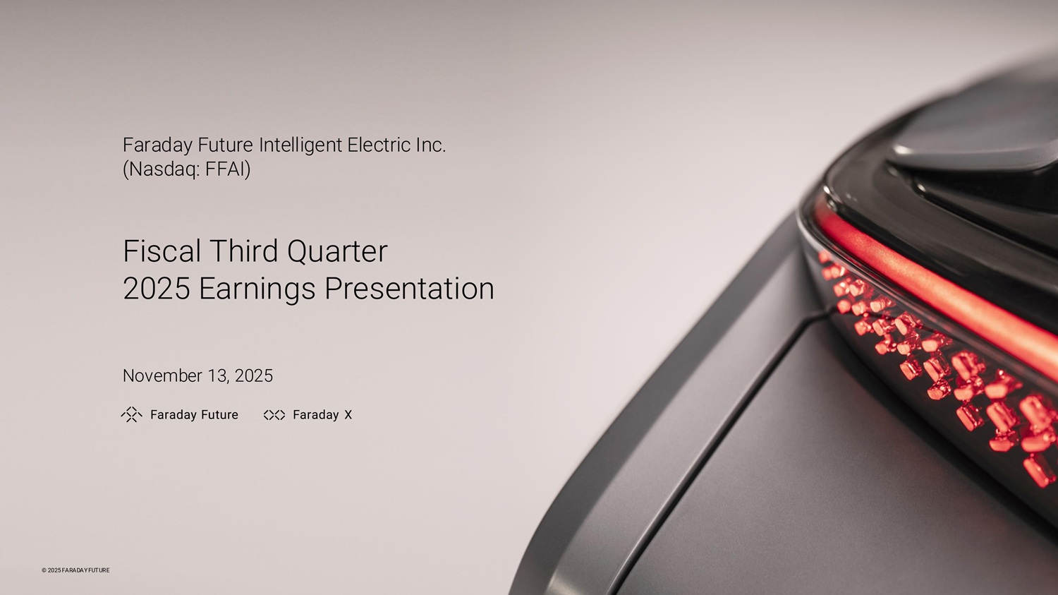 カリフォルニア州ロサンゼルス(2025年11月13日)--カリフォルニア州を拠点とする世界的なシェアード・インテリジェント電動モビリティ・エコシステム企業であるファラデー・フューチャー・インテリジェント・エレクトリック社(Nasdaq: FFAI)(以下「FF」、「ファラデー・フューチャー」、または「当社」)は本日、2025年第3四半期の業績を発表しました。当社は、事業の遂行、財務状況、および2025年第4四半期から2026年にかけての見通しを裏付ける、事業全体にわたるいくつかの重要な指標を強調しました。