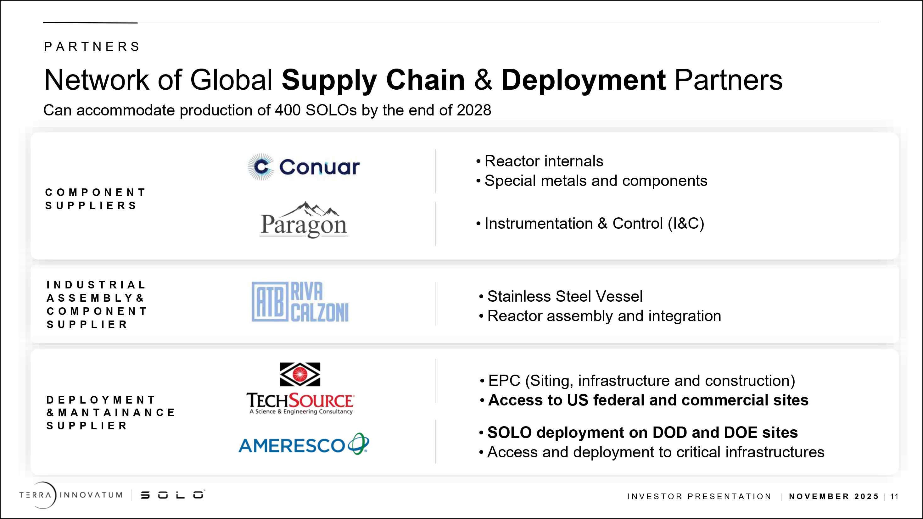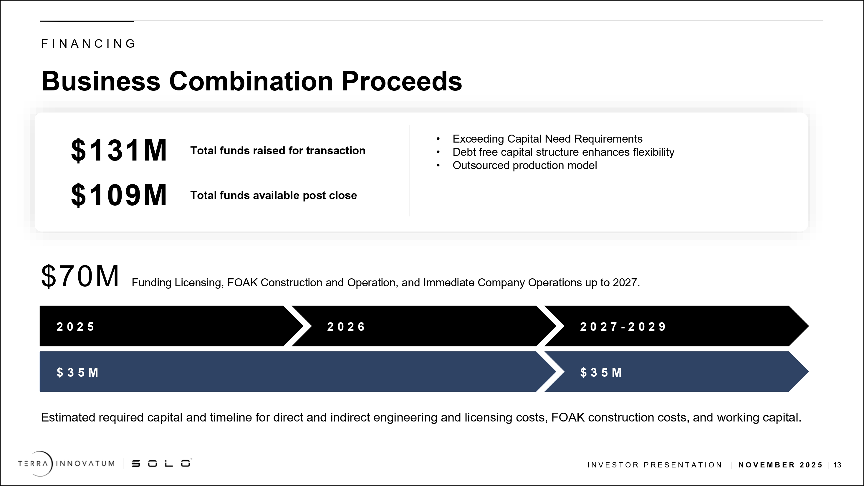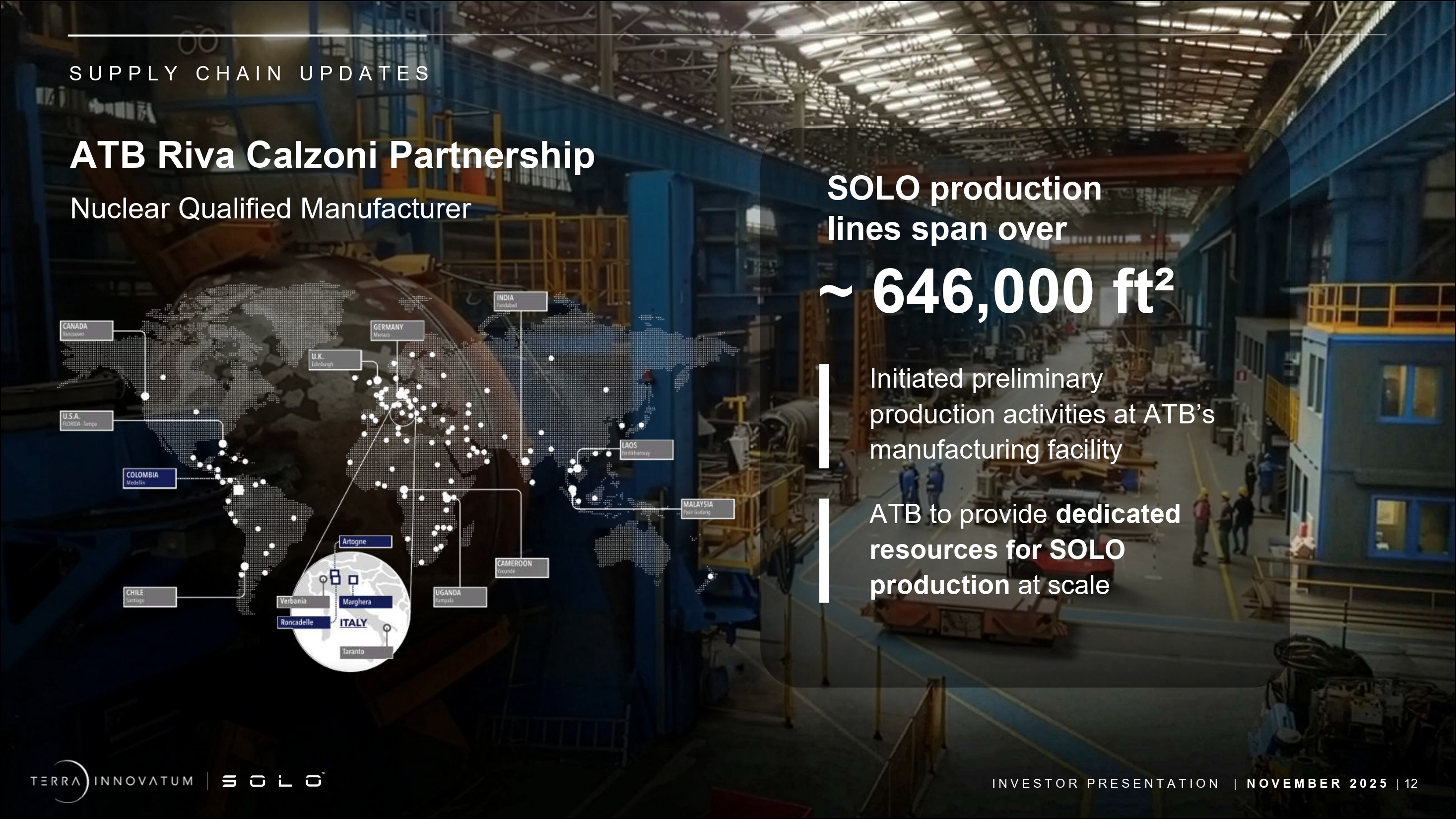 | ● | 2027年までに米国、欧州、南米でFOAK SOLO製造のための第三者部品・燃料サプライチェーン・パートナーを確保。 |