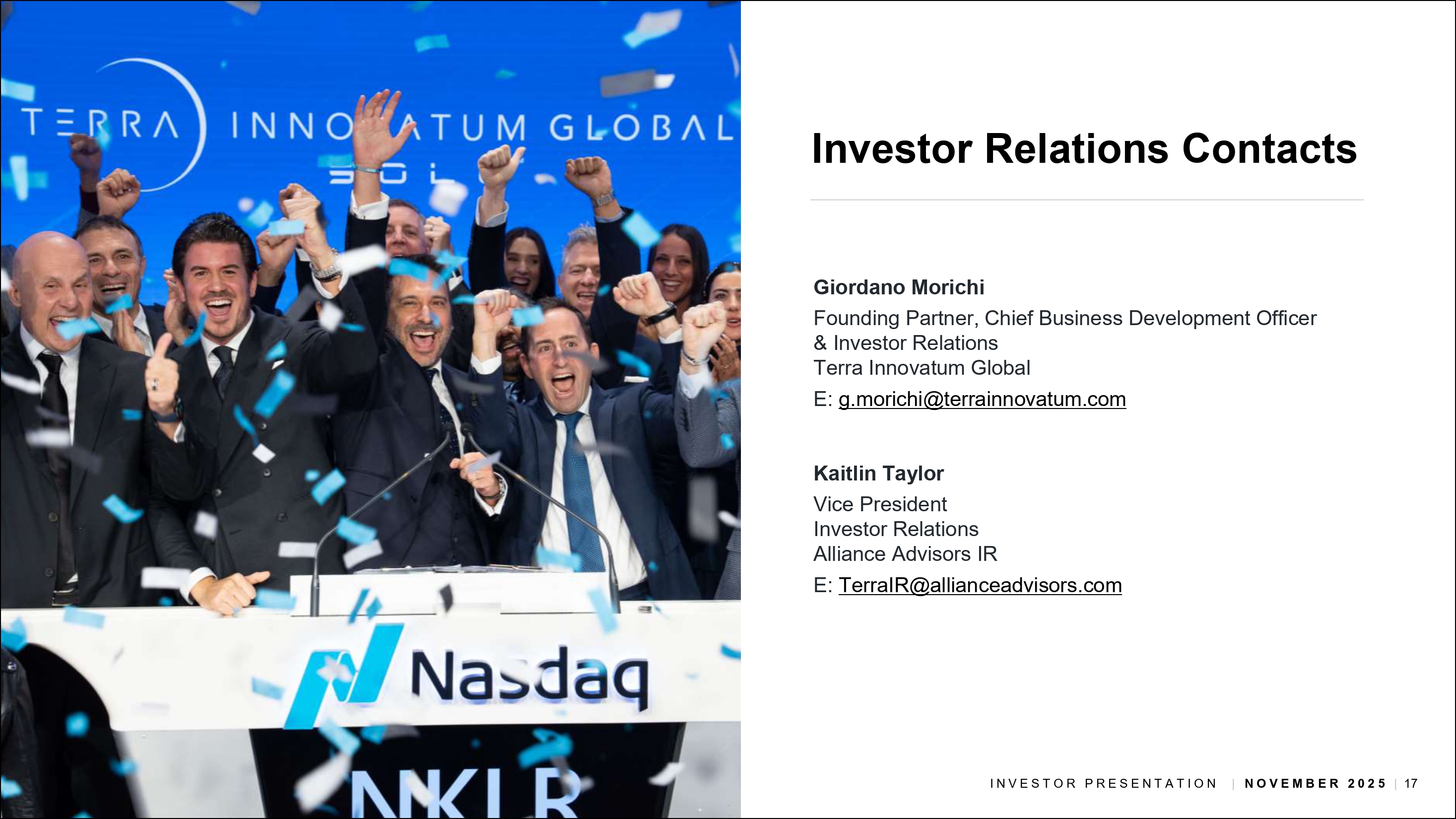 テラ・イノベイタムは本日午前8時30分(米国東部時間)より、2025年第3四半期決算および最近の事業進捗状況について、ライブ・ウェブキャストおよび電話会議を開催する。電話会議については、当社IRサイト(https://investors.terrainnovatum.com/news-events/events)の「イベント」セクションからアクセスできる。