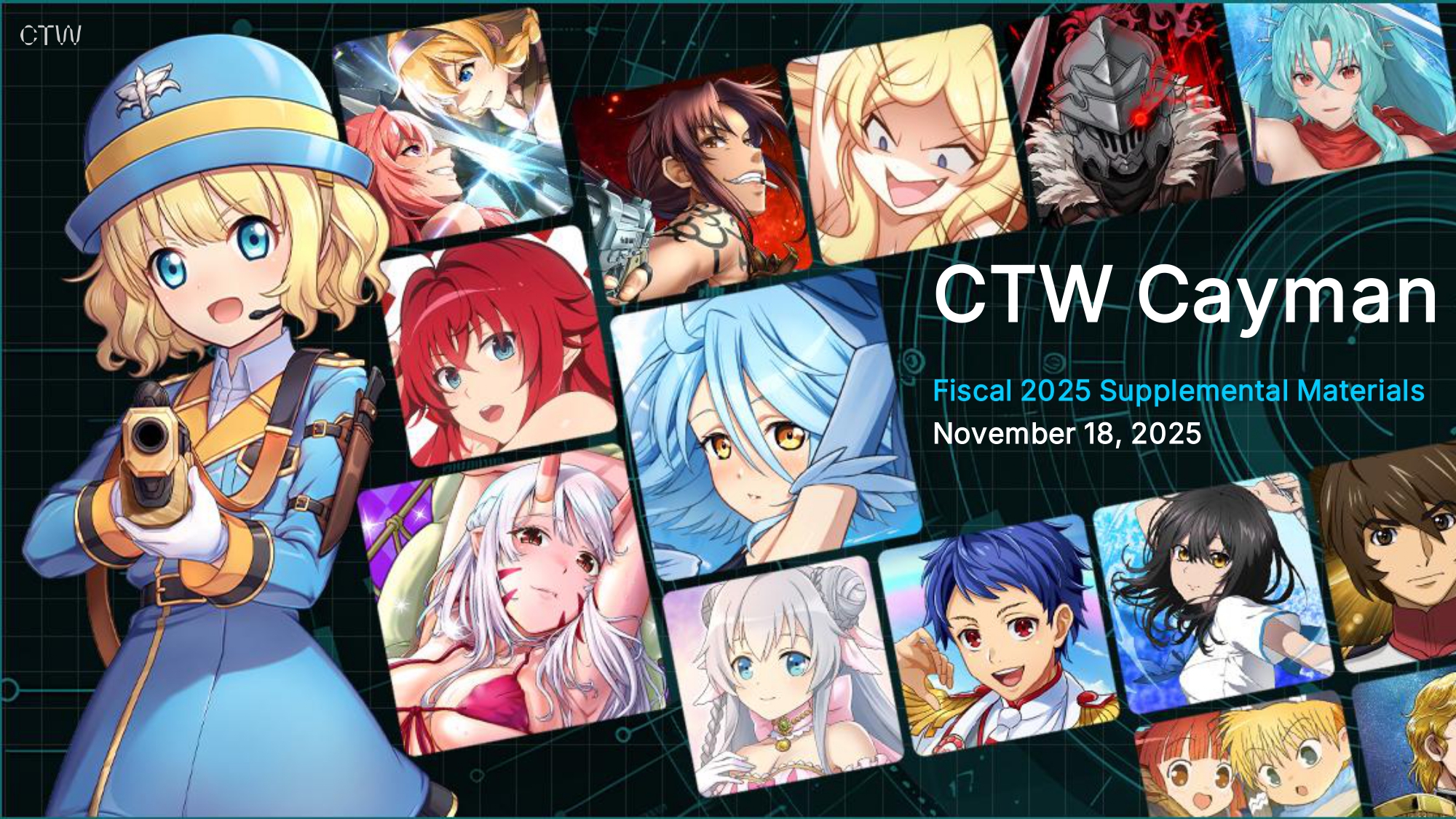 TOKYO, JAPAN, November 17, 2025 – CTW Cayman (Nasdaq: CTW) (“CTW” or “the Company”), a leading game platform company providing global access to web-based games through its flagship HTML5 platform, G123.jp, reports financial results for the six months (“2H25”) and fiscal year ended July 31, 2025 (“FY25”).