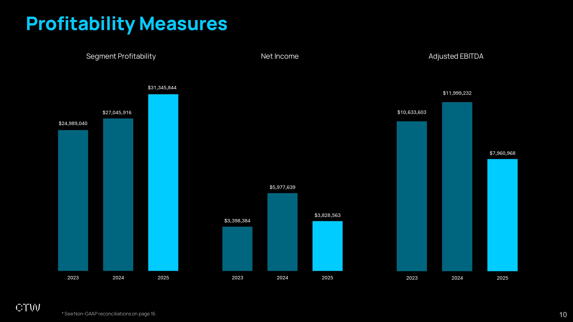 | * | Further clarification and explanation of Segment profits can be found in the Segment Reporting section of the release and at ctw.inc/investors. |