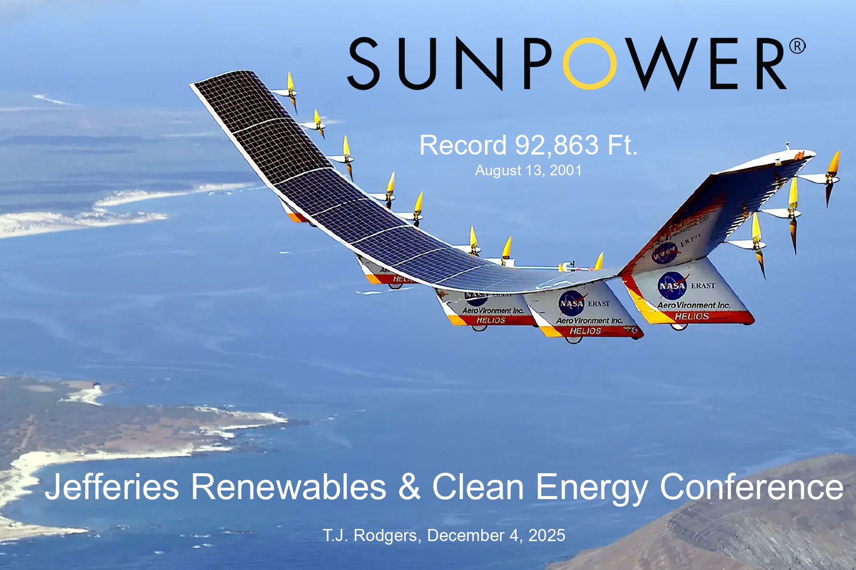 1 Jefferies Renewables & Clean Energy Conference T.J. Rodgers, December 4, 2025 Record 92,863 Ft. August 13, 2001