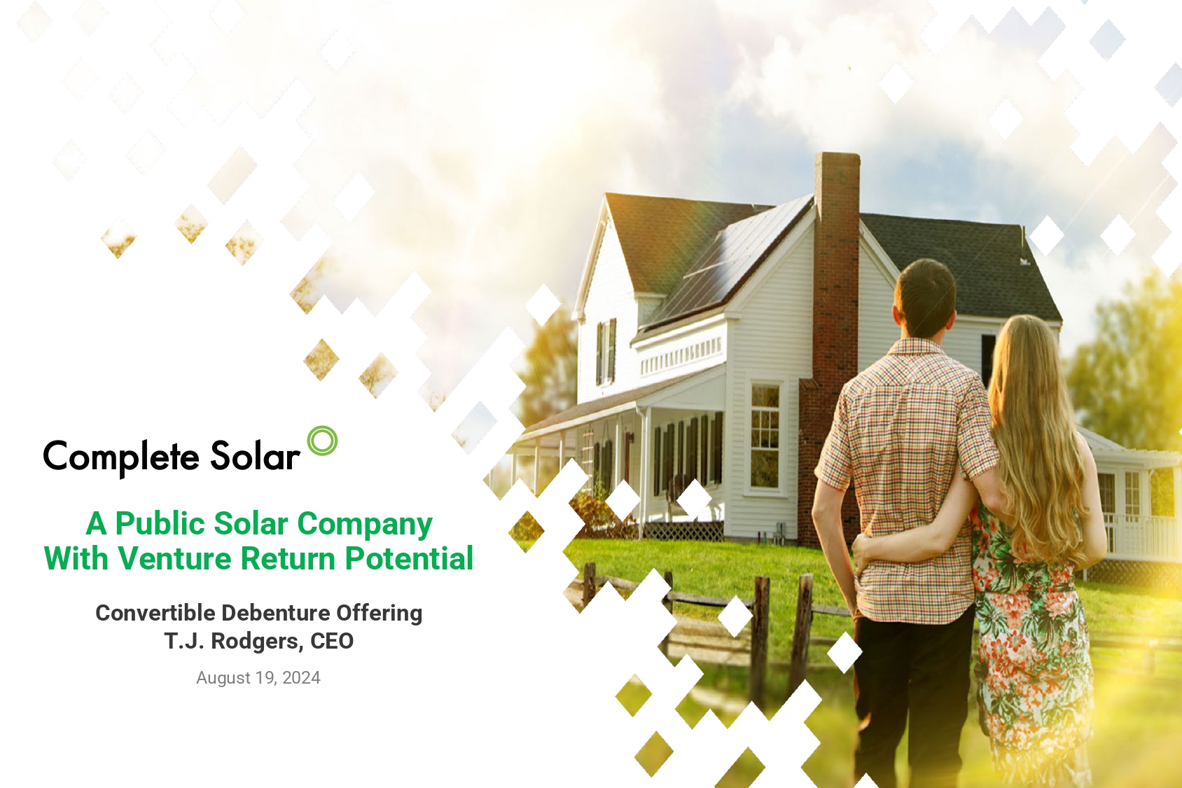©2024 Complete Solaria Owner: T.J. Rodgers 4 A Public Solar Company With Venture Return Potential Convertible Debenture Offering T.J. Rodgers, CEO August 19, 2024