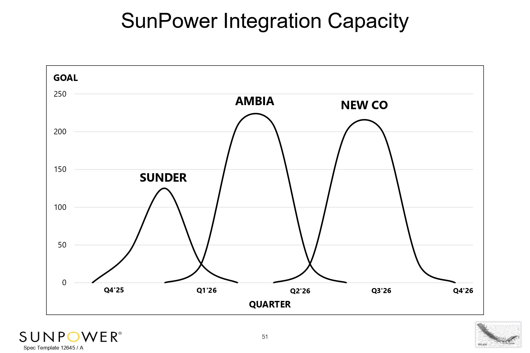 51 SunPower Integration Capacity 0 50 100 150 200 250 GOAL Q4'25 Spec Template 12645 / A SUNDER AMBIA NEW CO Q1'26 Q2'26 QUARTER Q3'26 Q4'26