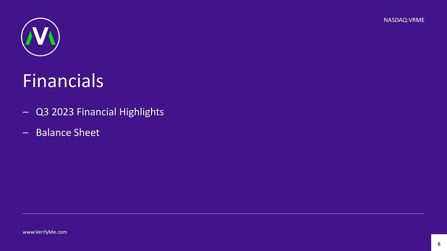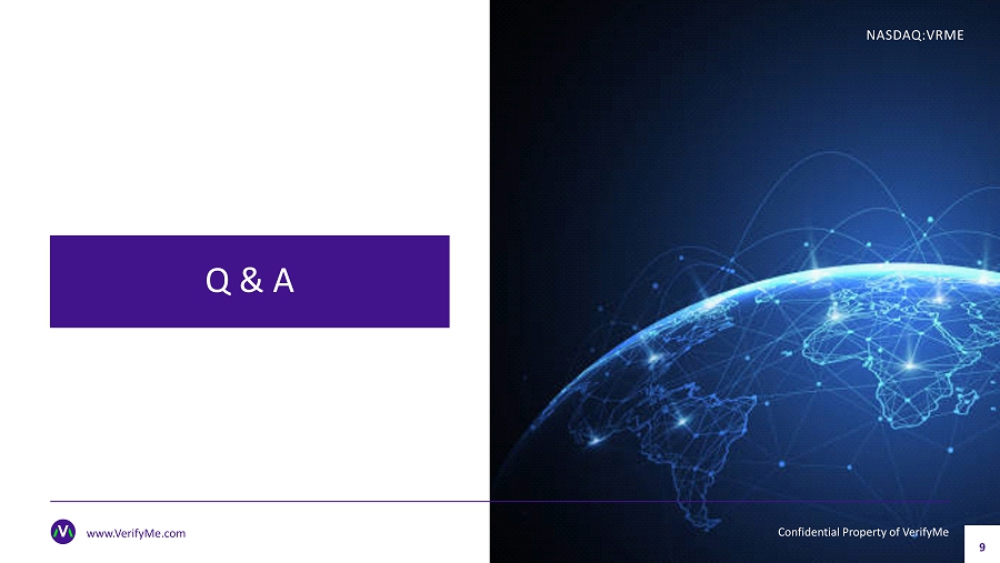 当社は、2023年11月8日(水)午前11時(米国東部時間)に決算電話会議とウェブキャストを予定しています。ベリファイの財務および経営成績に関する準備発言に続き、ベリファイの経営陣との質疑応答が行われます。この電話会議には、ウェブキャスト(https://event.choruscall.com/mediaframe/webcast.html?webcastid=Bjn13iwR)、または米国内は+1 (844) 282-4569、海外は+1 (412) 317-5614に電話し、"VerifyMe Call "とリクエストすることでアクセスできます。ウェブキャストで放送されるプレゼンテーション・スライドは、電話会議の当日の朝、VerifyMeウェブサイトの投資家セクションでもご覧いただけます。コール中に経営陣に質問を提出するためには、参加者は電話でログインしている必要があります。参加者は、電話会議とウェブキャストへの事前登録が可能です。https://dpregister.com/sreg/10183716/facf83072c。