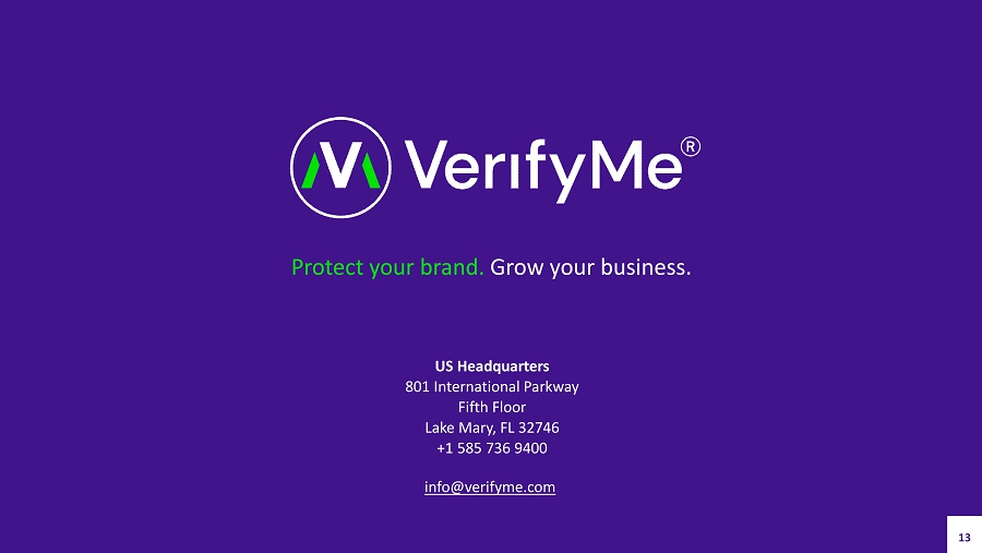 VerifyMe, Inc. (NASDAQ: VRME)は、その子会社であるPeriShip GlobalとTrust Codes Globalと共に、トレーサビリティとブランドソリューションを提供している。同社は、認証セグメントと精密物流セグメントを運営し、品目レベルのトレーサビリティ、流出防止と偽造防止、ブランド保護と強化技術ソリューション、時間や温度に敏感な製品のための特殊物流を提供している。VerifyMeは世界中の顧客にサービスを提供しています。詳細については、https://www.verifyme.com。