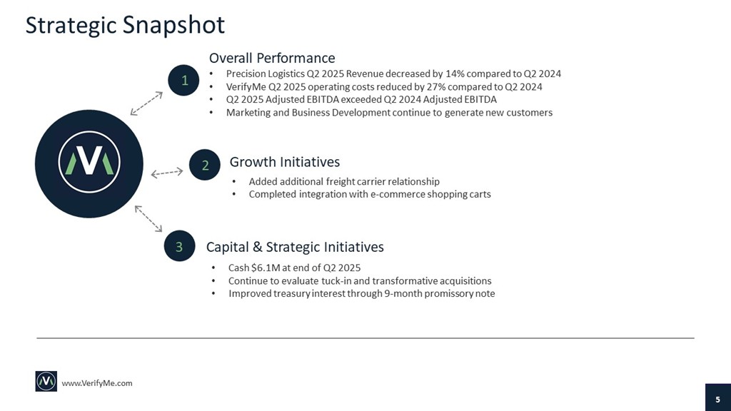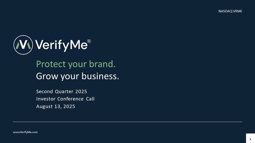 フロリダ州レイクメアリー - 2025年8月13日 - PRNewswire=共同通信JBN】ベリファイミー(VerifyMe, Inc. NASDAQ: VRME)(以下「ベリファイミー」、「当社」または「会社」)は、ブランド所有者に時間と温度に敏感なロジスティクスとブランド保護・強化ソリューションを提供しているが、本日、2025年6月30日に終了した第2四半期(「2025年第2四半期」)の業績を発表した。