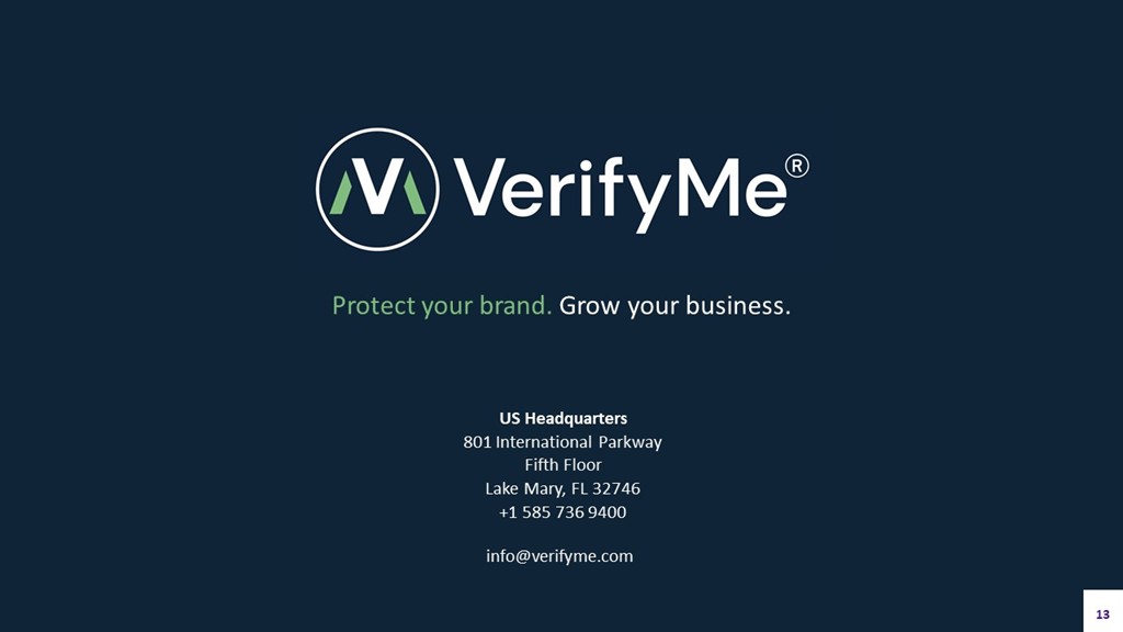 verifyme, inc. (nasdaq: vrme)は、時間や温度に敏感な製品に特化したロジスティクスと、ブランド保護および強化ソリューションを提供しています。詳細については、www.verifyme.com。