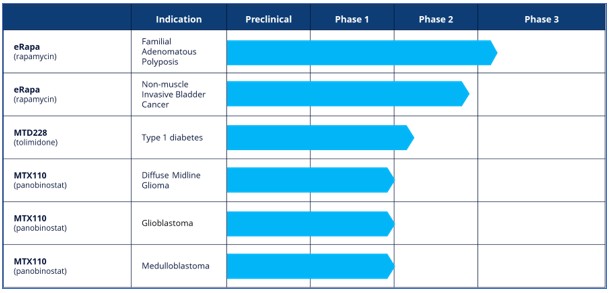 An IIT Phase I study of MTX110 in medulloblastoma remains ongoing at the University of Texas.