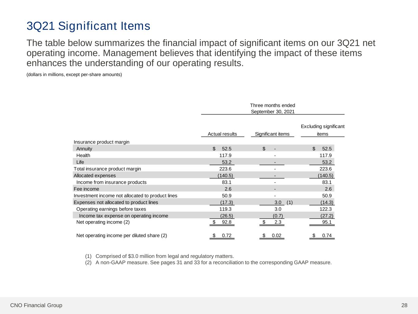 | Investment income not allocated to product lines (9) | 50.9 | — | 50.9 | |||||||||||||||||