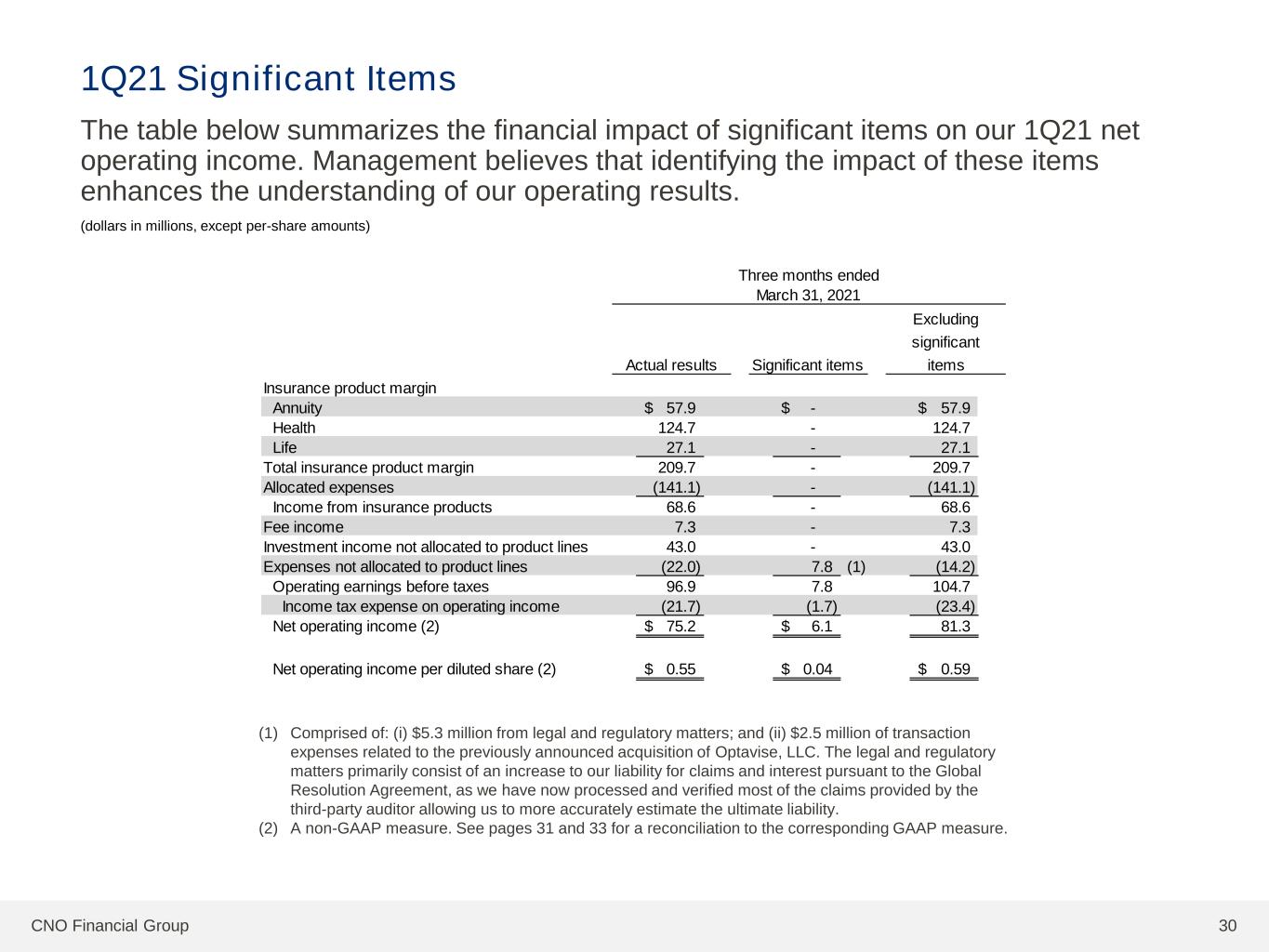 | Annuity interest margin | $ | 39.6 | $ | 93.9 | (58) | |||||||||||||||||||||||||||