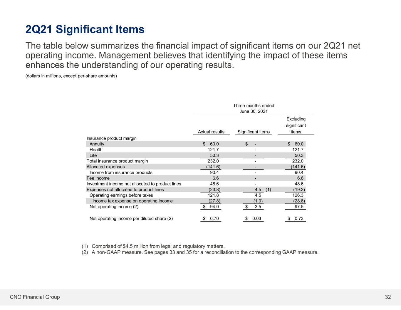 | Investment income not allocated to product lines (9) | 44.0 | — | 44.0 | |||||||||||||||||