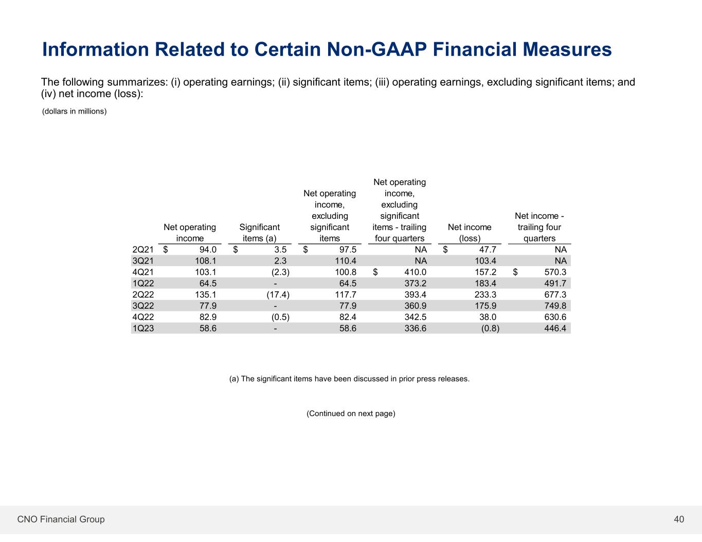 | Net realized investment gains (losses) from sales and change in allowance for credit losses | (0.11) | (0.06) | (12.7) | (7.2) | |||||||||||||||||||||||||||||||||||||