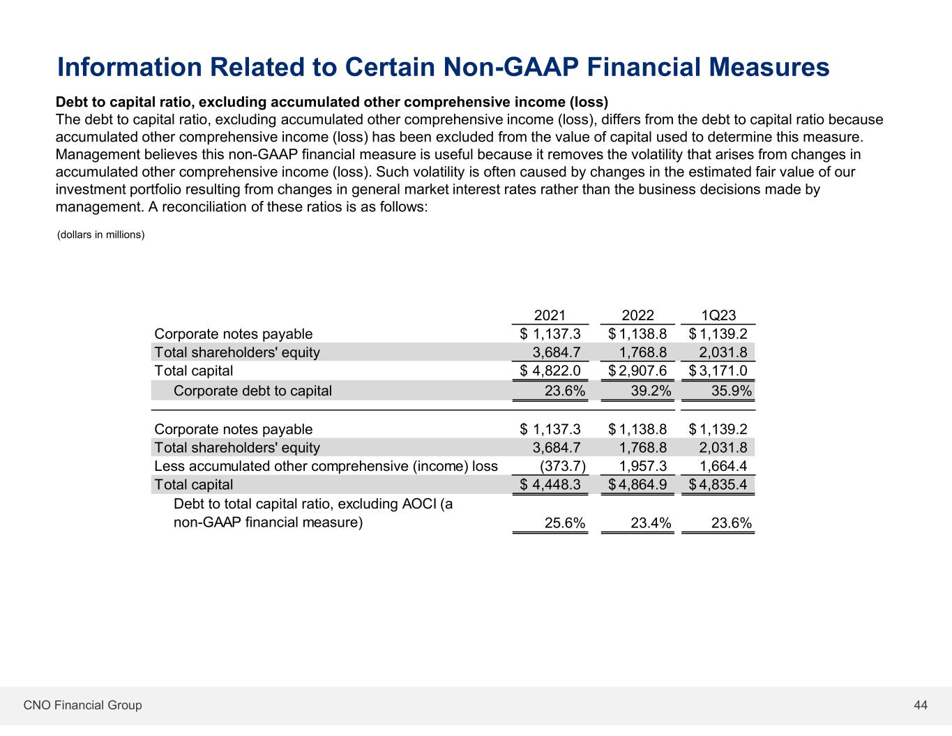 | Average yield on investments allocated to health products | 5.03 | % | 5.00 | % | 5.00 | % | 4.98 | % | 5.00 | % | 4.90 | % | 4.83 | % | 4.83 | % | 4.84 | % | 4.85 | % | ||||||||||||||||||||||||||||||||||||||||||