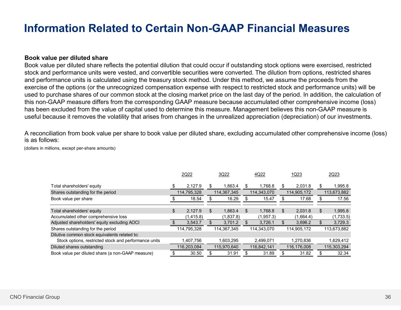 | Book value per diluted share, excluding accumulated other comprehensive loss (a non-GAAP financial measure) (2) | $ | 32.34 | $ | 30.50 | |||||||