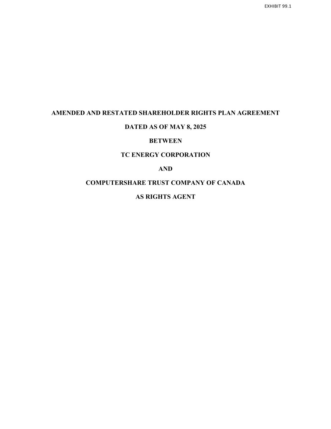 AMENDED AND RESTATED SHAREHOLDER RIGHTS PLAN AGREEMENT DATED AS OF MAY 8, 2025 BETWEEN TC ENERGY CORPORATION AND COMPUTERSHARE TRUST COMPANY OF CANADA AS RIGHTS AGENT EXHIBIT 99.1
