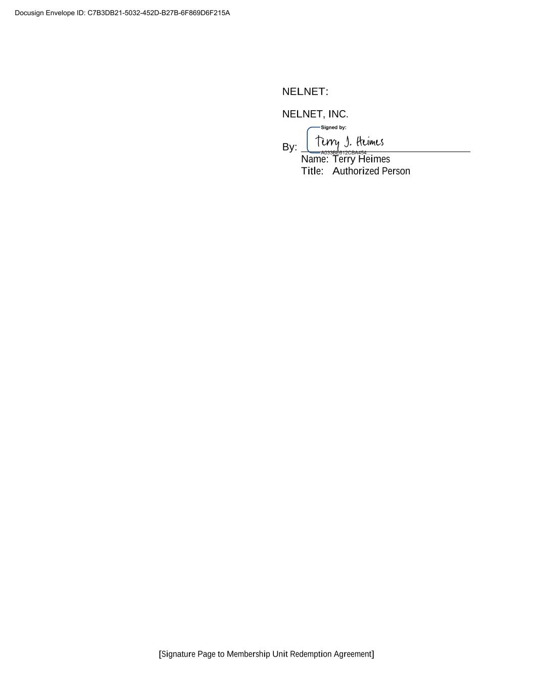 [Signature Page to Membership Unit Redemption Agreement] NELNET: NELNET, INC. By: Name: Terry Heimes Title: Authorized Person Docusign Envelope ID: C7B3DB21-5032-452D-B27B-6F869D6F215A