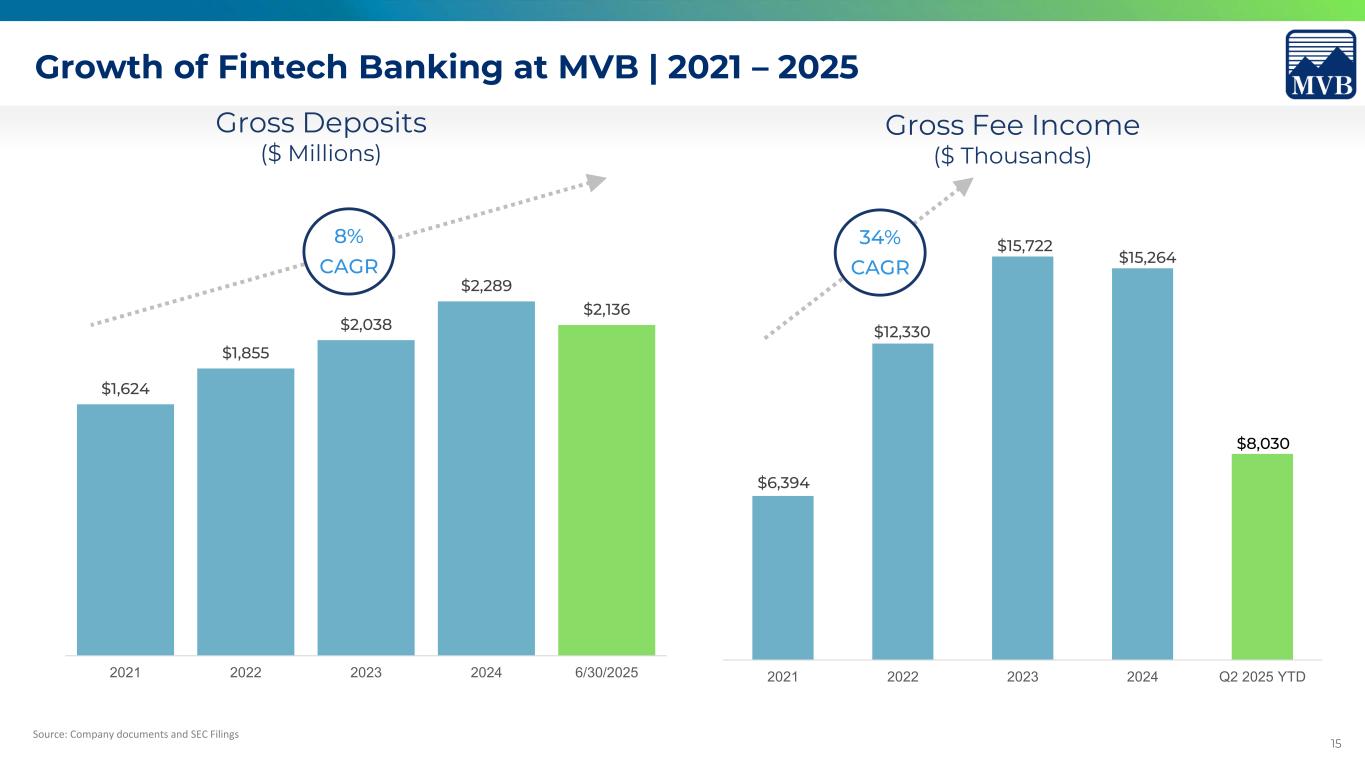 15 Growth of Fintech Banking at MVB | 2021 – 2025 Source: Company documents and SEC Filings $1,624 $1,855 $2,038 $2,289 $2,136 2021 2022 2023 2024 6/30/2025 Gross Deposits ($ Millions) 8% CAGR Gross Fee Income ($ Thousands) $6,394 $12,330 $15,722 $15,264 $8,030 2021 2022 2023 2024 Q2 2025 YTD 34% CAGR