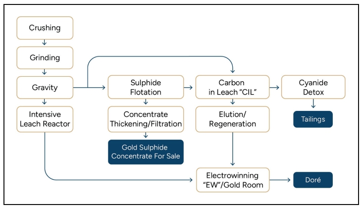 The appropriate treatment flowsheet is via gravity gold recovery and flotation of gravity tails to produce a saleable gold concentrate, confirming the flowsheet presented in the Queensway PEA (Figure 4).