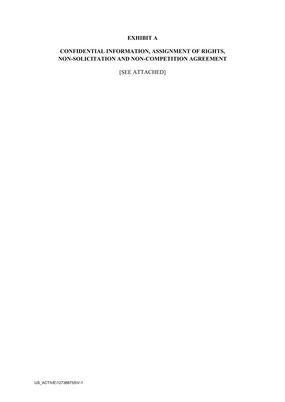 US_ACTIVE\127388755\V-1 EXHIBIT A CONFIDENTIAL INFORMATION, ASSIGNMENT OF RIGHTS, NON-SOLICITATION AND NON-COMPETITION AGREEMENT [SEE ATTACHED]