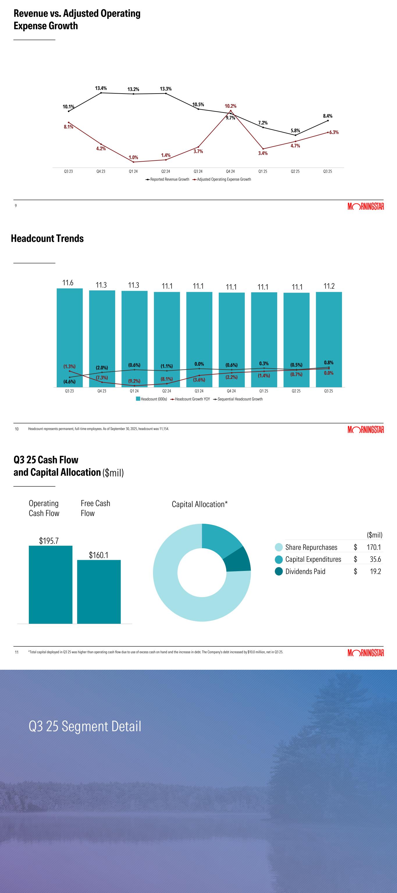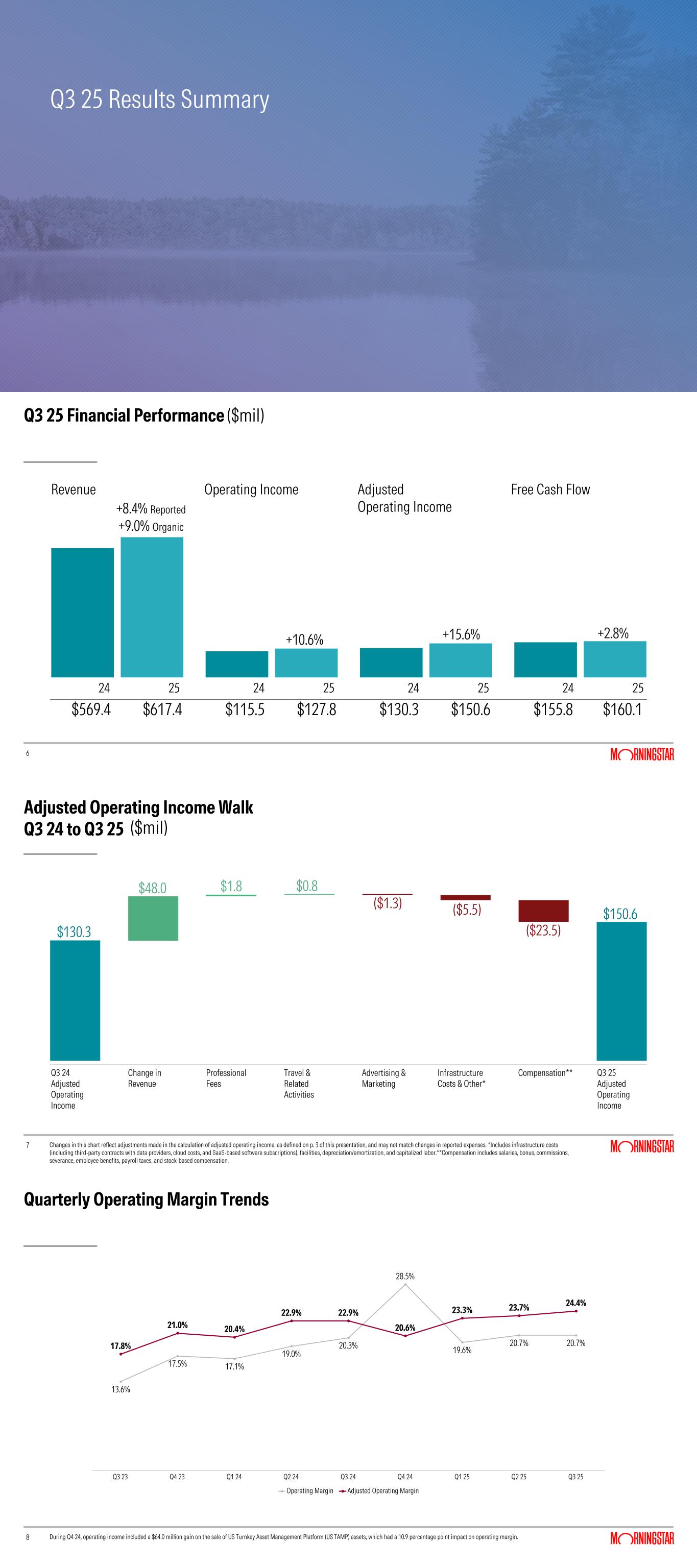 Higher operating expense was largely driven by an increase of $29.3 million in compensation costs. In addition to higher salaries and benefits, the increase was driven by higher bonus and stock-based compensation, reflecting strong results relative to targets. Higher compensation costs also included $4.4 million in commissions and retention payments excluded from adjusted operating income related to the ongoing wind-down of Morningstar Office and the sunsetting of Morningstar Wealth's US Turnkey Asset Management Platform (US TAMP).